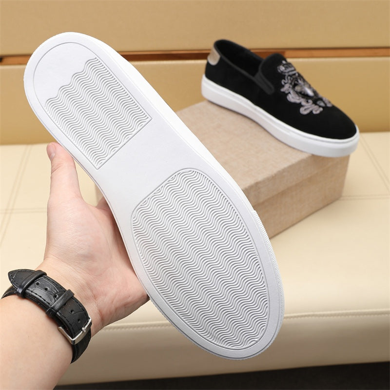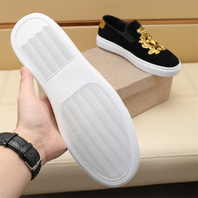 GG Men's Slip-on Loafers Black Gold Suede 545716