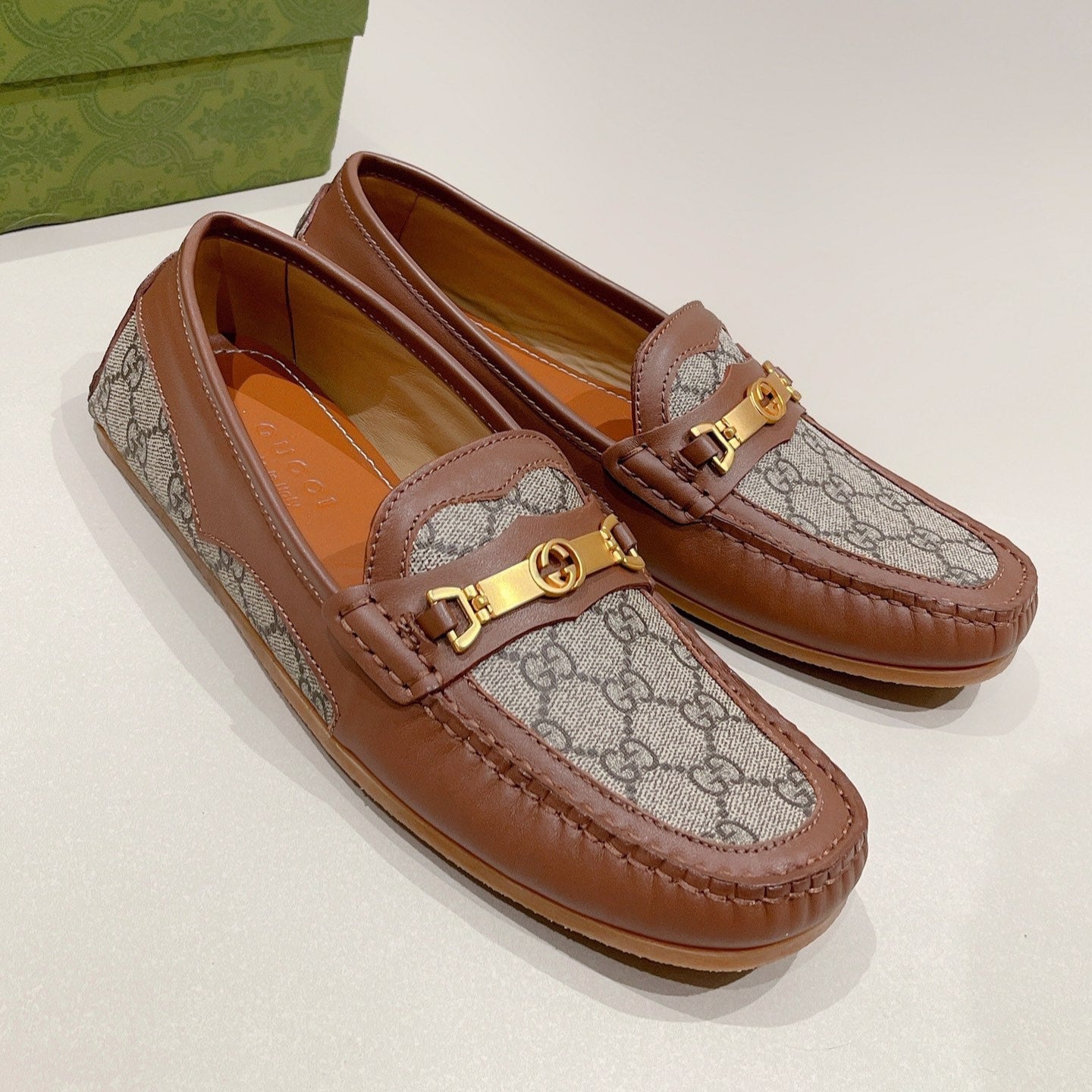 GG Men's Loafer Brown Cowhide Canvas 551267