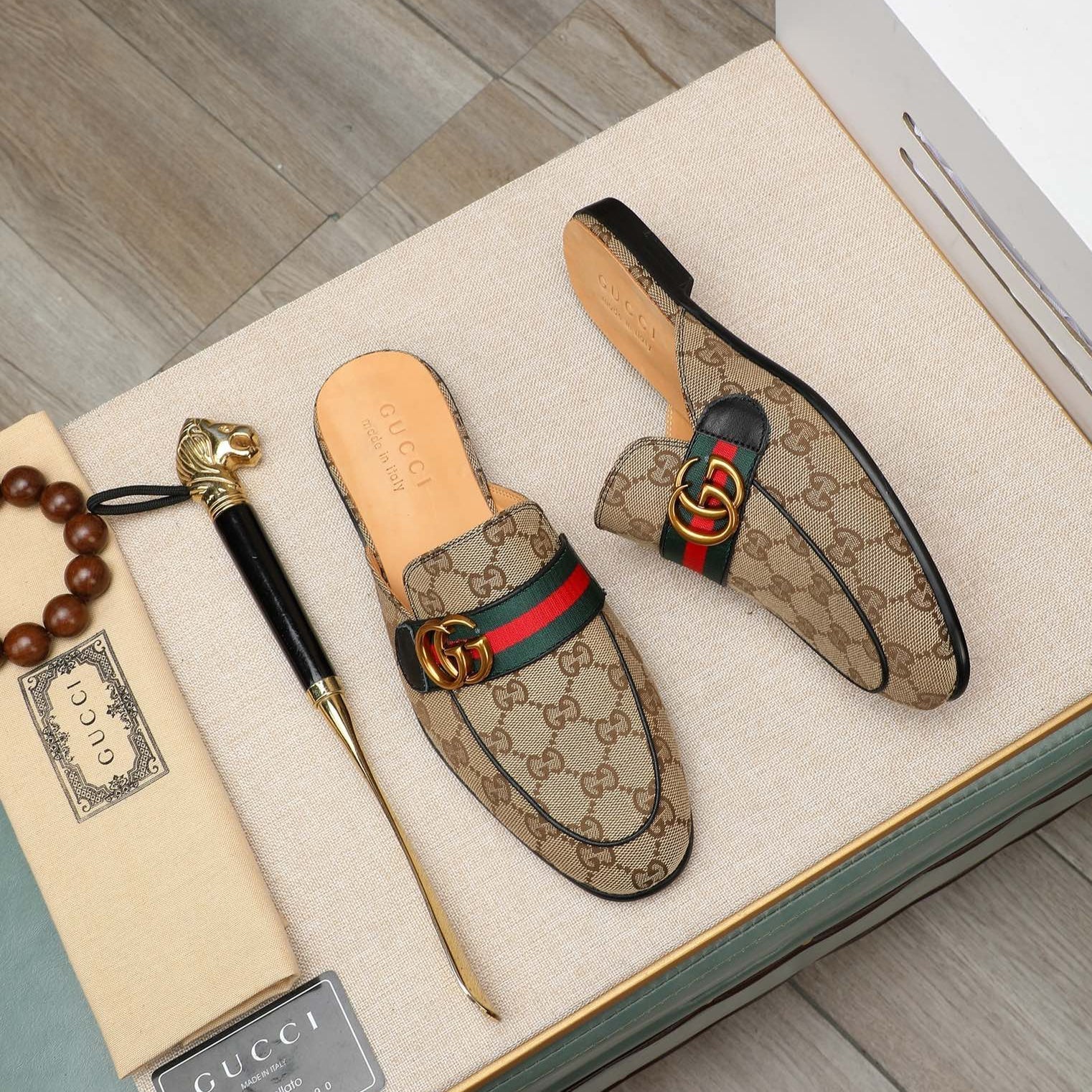 GG Men's Mule Brown Black Canvas Calfskin 559041