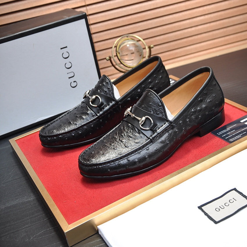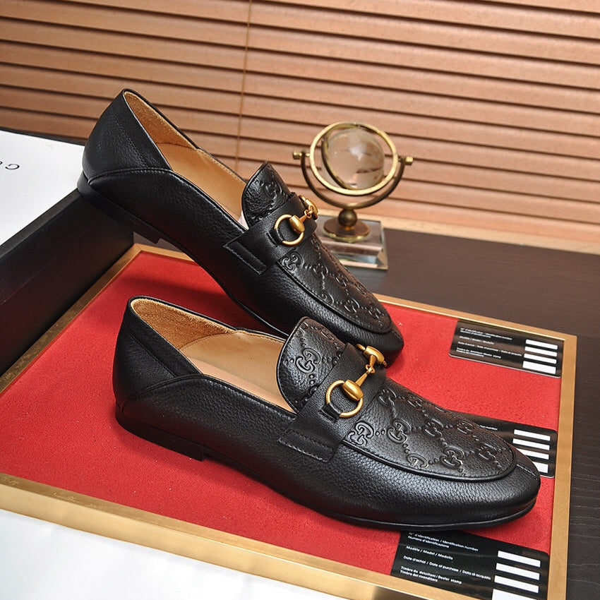 GG Men's Loafer Black GG Gold Embossed Cowhide 736976