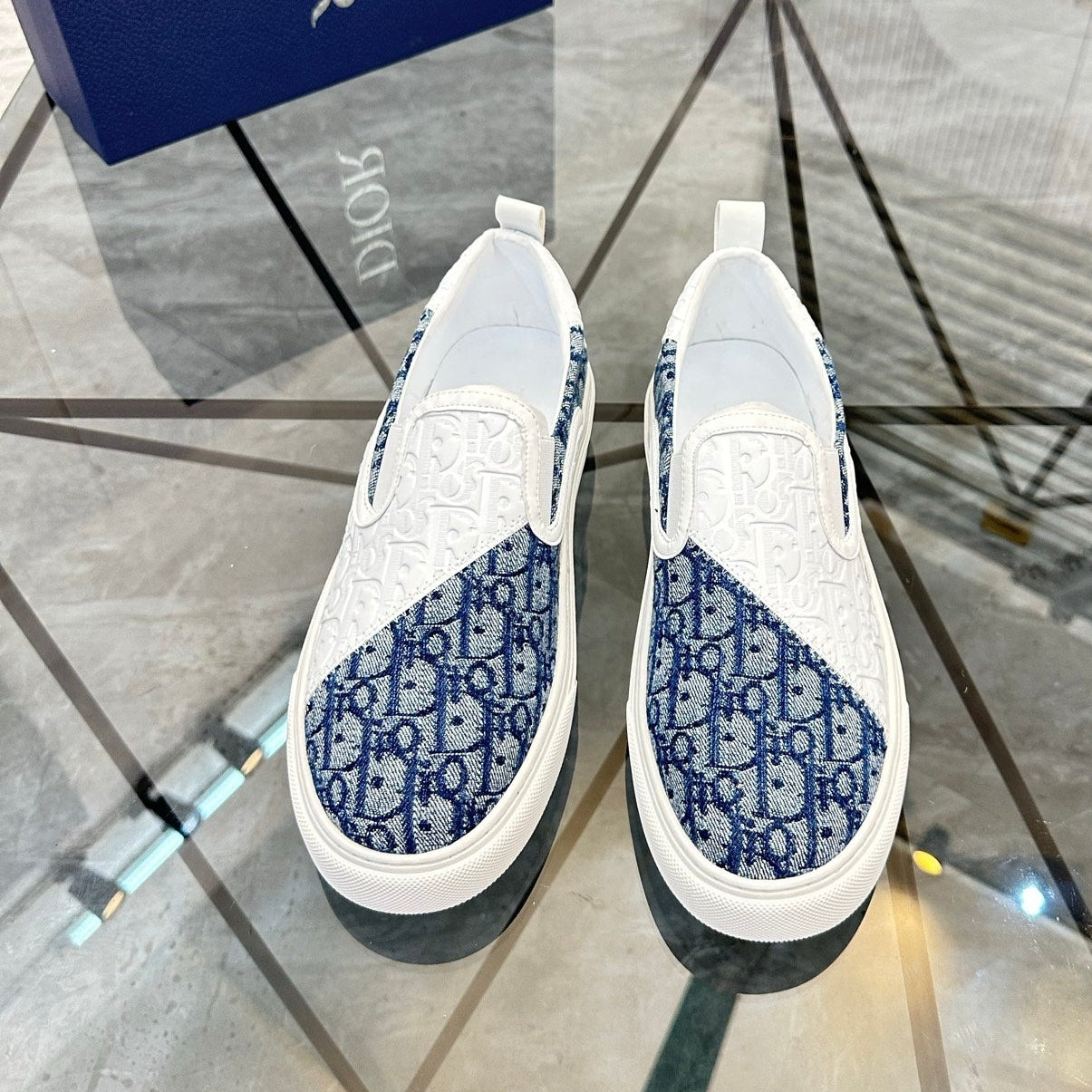 CD Slip on loafer White Blue Cowhide Fabric 647995