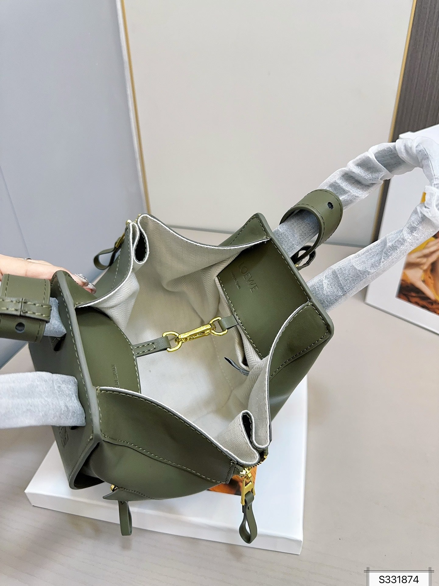 LOE COMPACT HAMMOCK 24 BAG IN OLIVE MELLOW CALFSKIN AND CANVAS