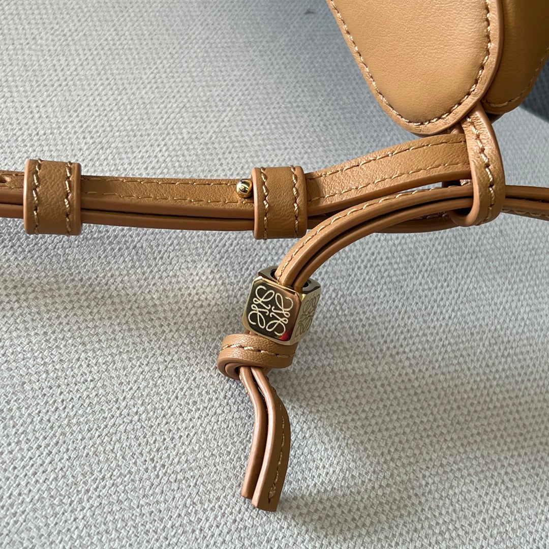 LOE MINI 19 PEBBLE BUCKET IN CAMEL BROWN MELLOW CALFSKIN