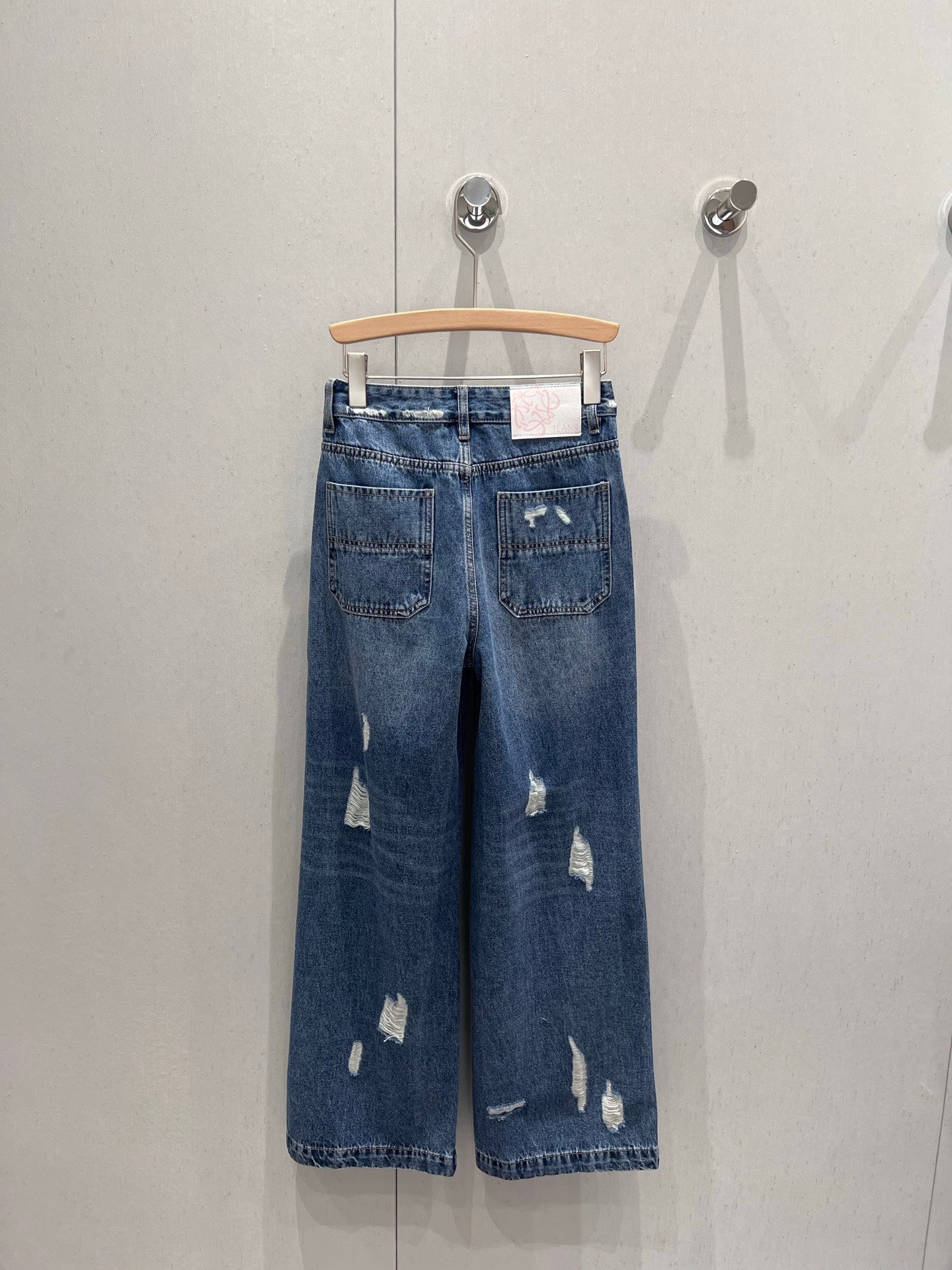 Loewe 25 Diamond Hole Straight Jeans Blue Cotton 217426