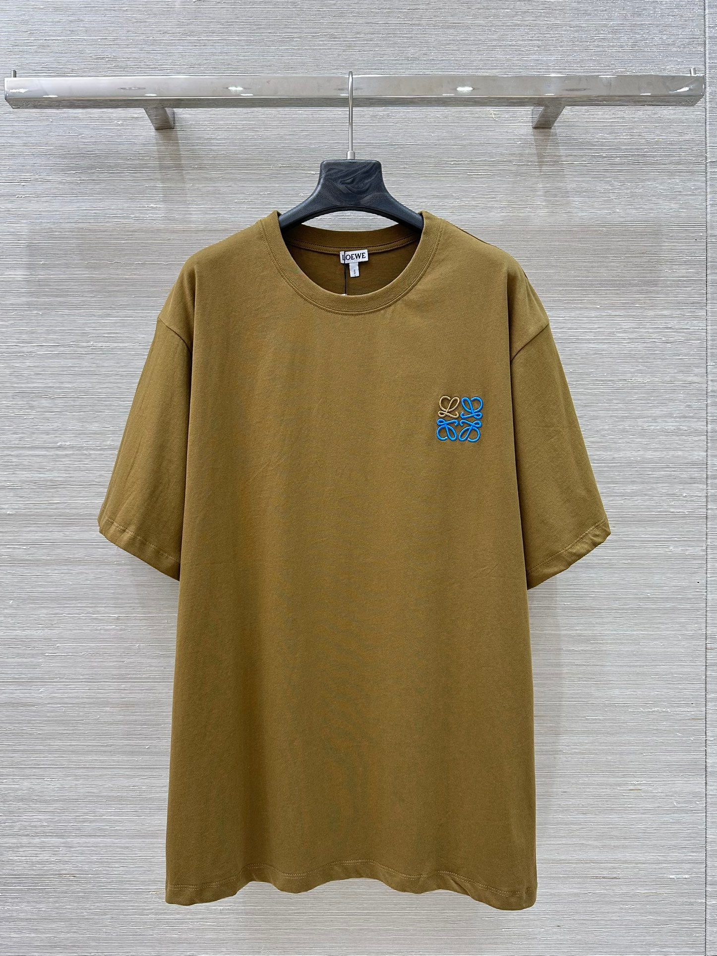 Loewe 25 Floral Embroidered Short-sleeved T-shirt Olive Brown Cotton