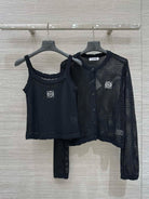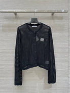 Loewe 25 Mesh Hollow Knitted Cardigan Black Wool