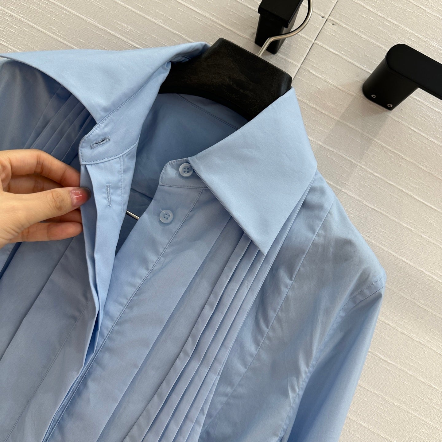 Loewe 25 Pleated Flower Knot Shirt Blue Cotton