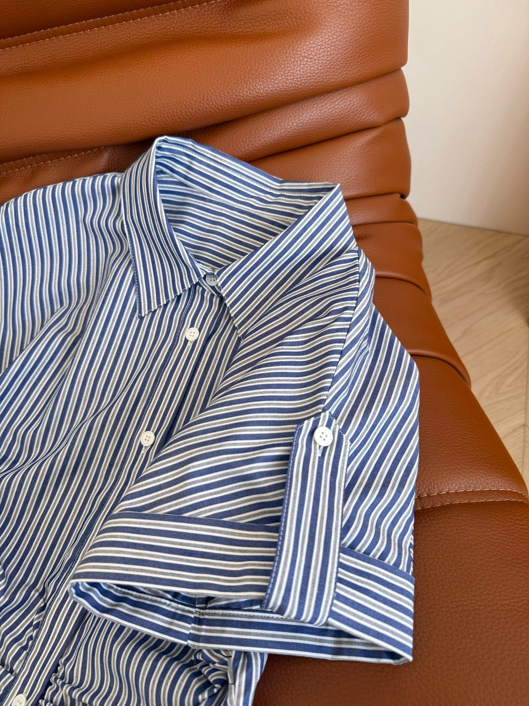 Loewe 25 Pleated Striped Dress Blue White Cotton