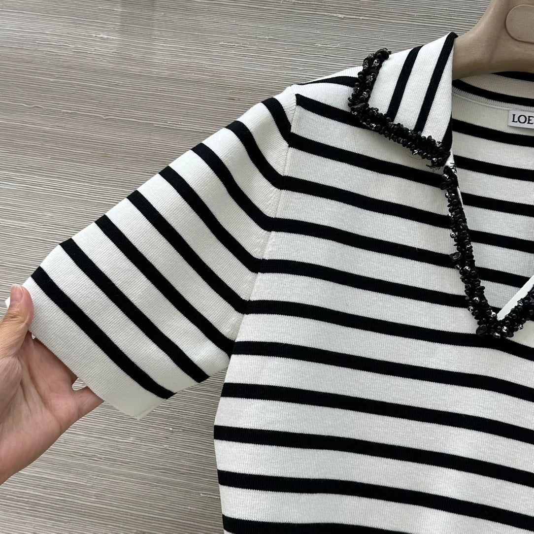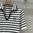 Loewe 25 Striped Knitted Polo Short-sleeved Top White Tencel