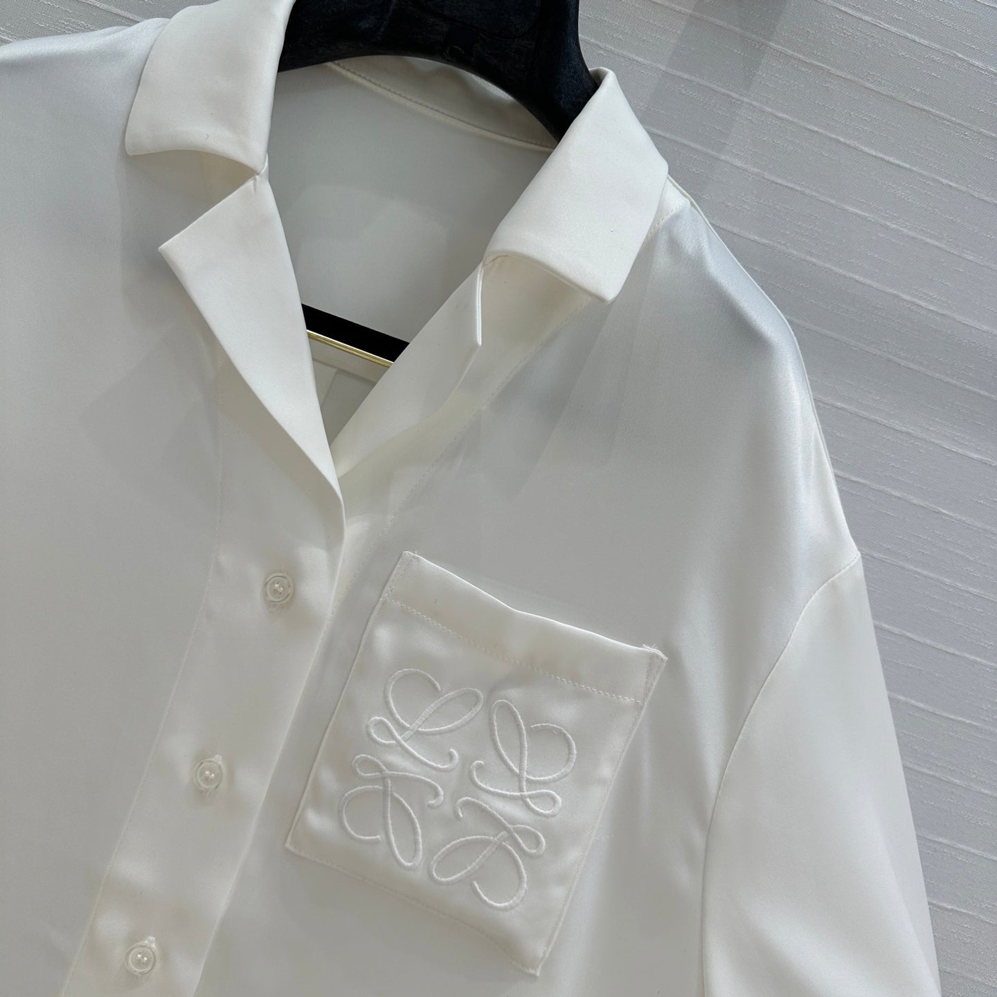 Loewe Hollow Logo Embroidered Striped Shirt White Cotton