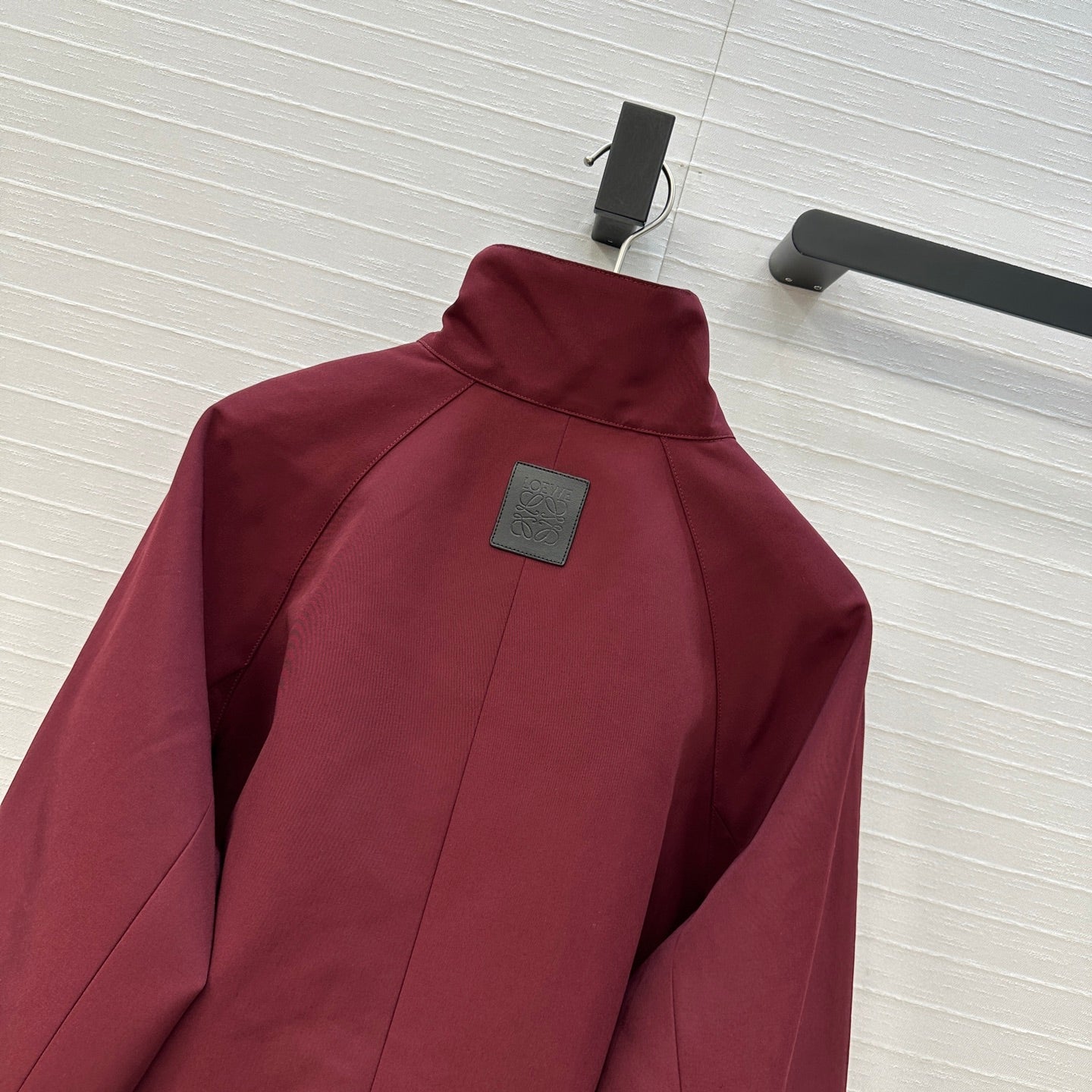 Loewe 25 Stand Collar Short Trench Coat Burgundy Red Cotton Nylon 224272
