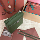 EXTRA POCKET BACKPACK L23.5 IN PINE GREEN CALFSKIN WITH SILVER HARDWARE