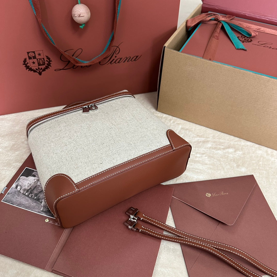 EXTRA POCKET BACKPACK L23.5 IN WHITE CANVAS AND BRONZE BROWN CALFSKIN