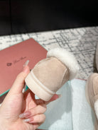 LP Summer Charms Walk Loafers In Almond Beige Mix White Suede With Rabbit Fur Lining 985648
