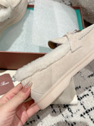 LP Summer Charms Walk Loafers In White Suede With Rabbit Fur Lining 985649
