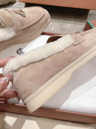 LP Summer Charms Walk Loafers Light Brown Beige Mix White Suede With Rabbit Fur Lining 206250