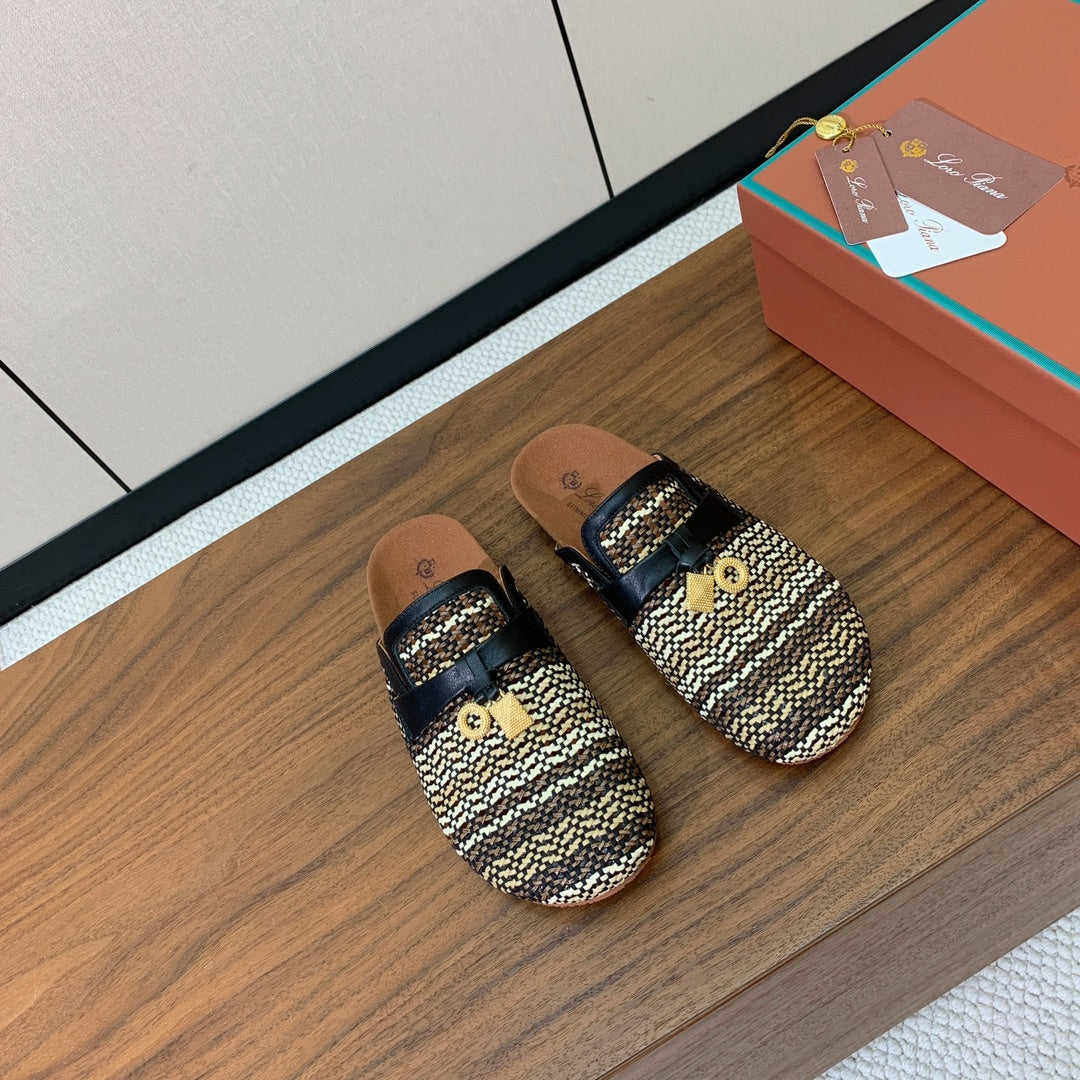 LP Birkenstock slippers black beige raffia calfskin 386726