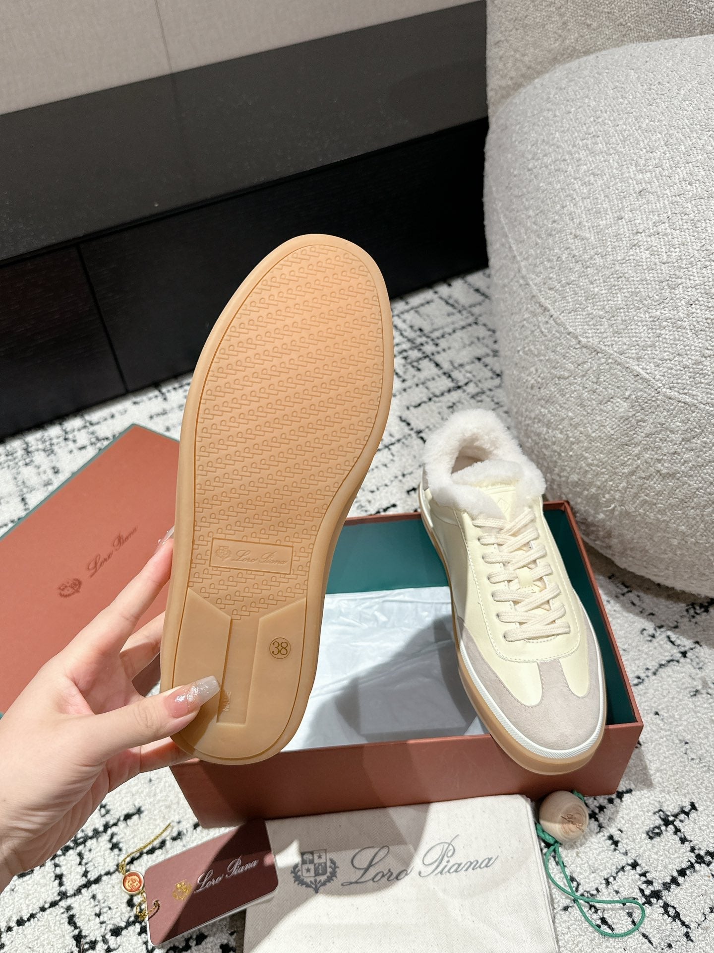 LP Tennis Walk Sneaker In Ivory White Mix Light Grey Lambskin Lined With Wool Fleece 985657