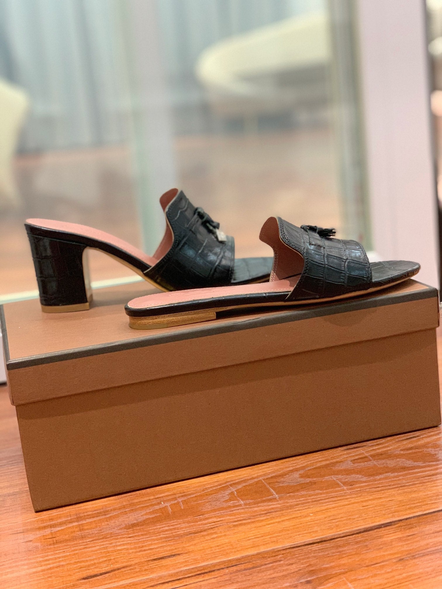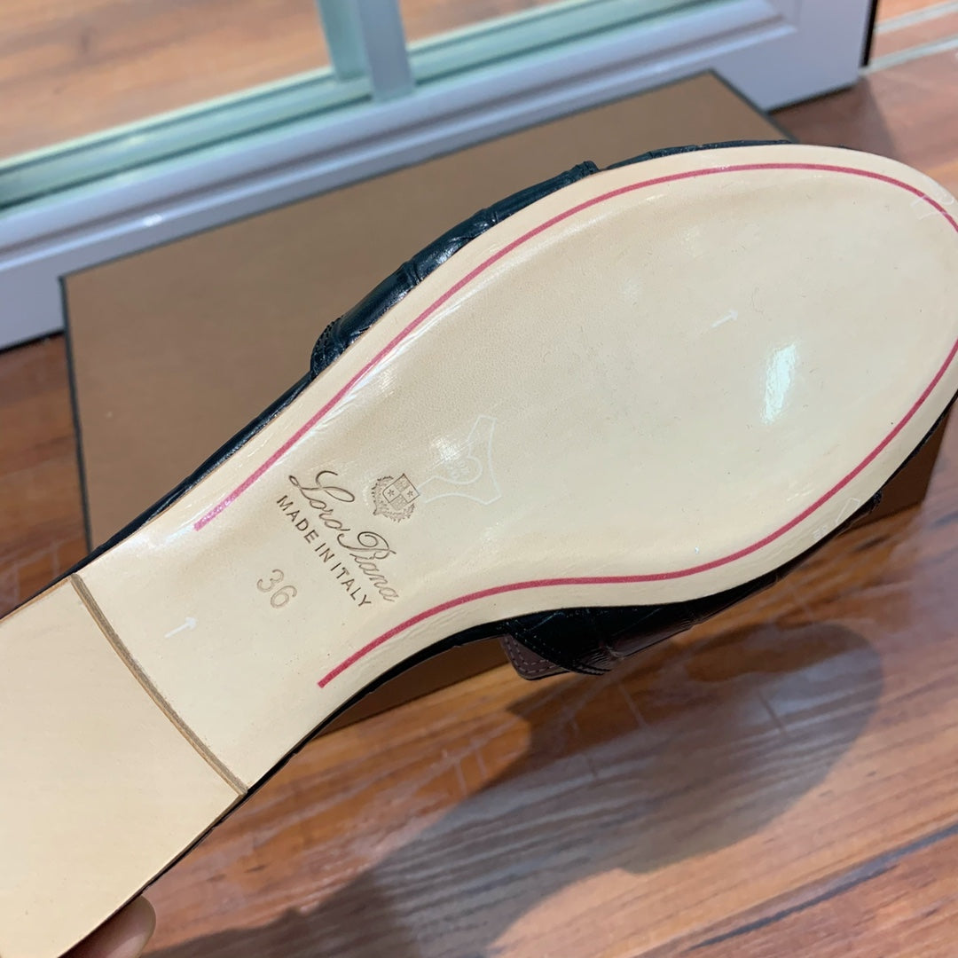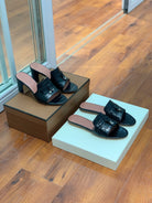 Summer Charms Sandals Mule Black Crocodile Pattern Pink Lambskin