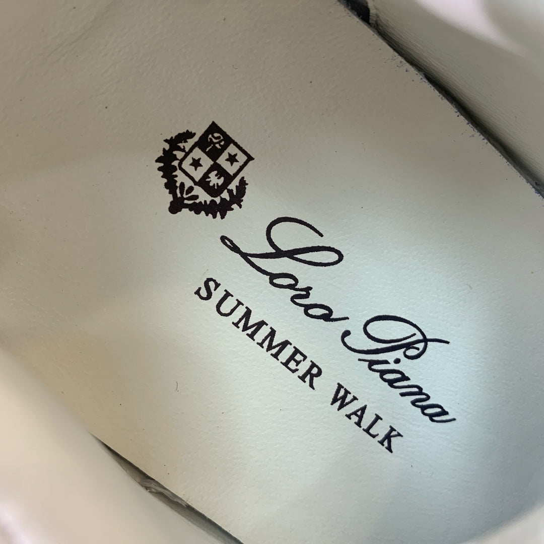 Loro Piana Navy White Suede Charms Walk Flat Mules