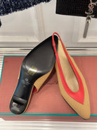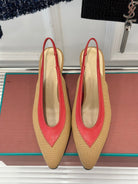 LP Rebecca Slingbacks In Mustard Brown Mix Red Cotton Fabric And Lambskin 989419