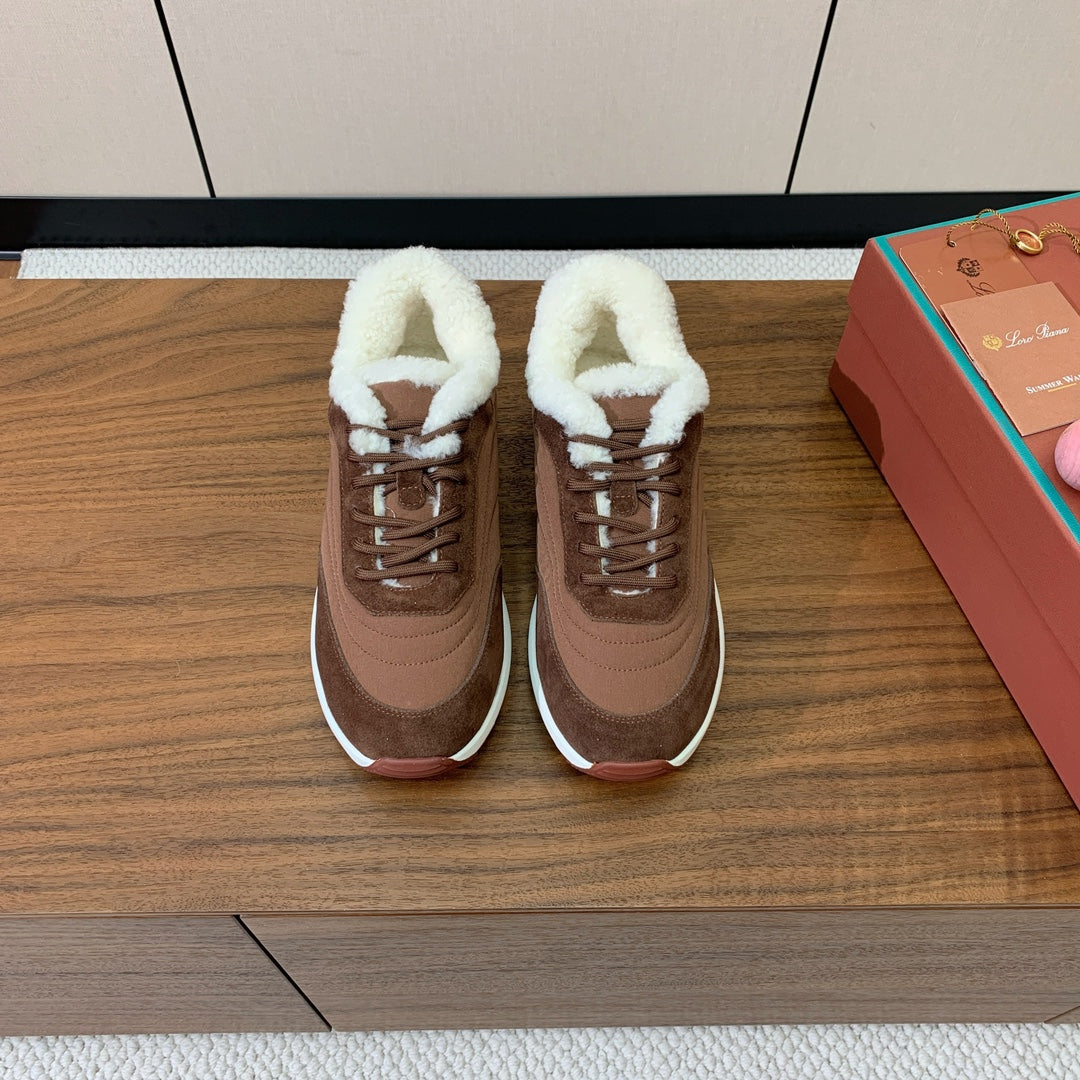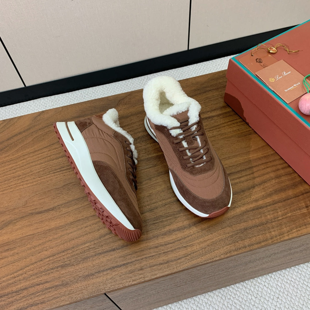 LP Tennis Walk Sneaker In Ivory White Mix Light Grey Lambskin Lined With Wool Fleece 985657