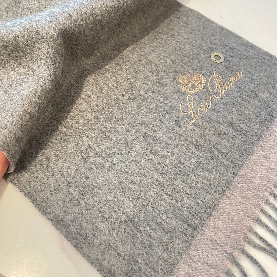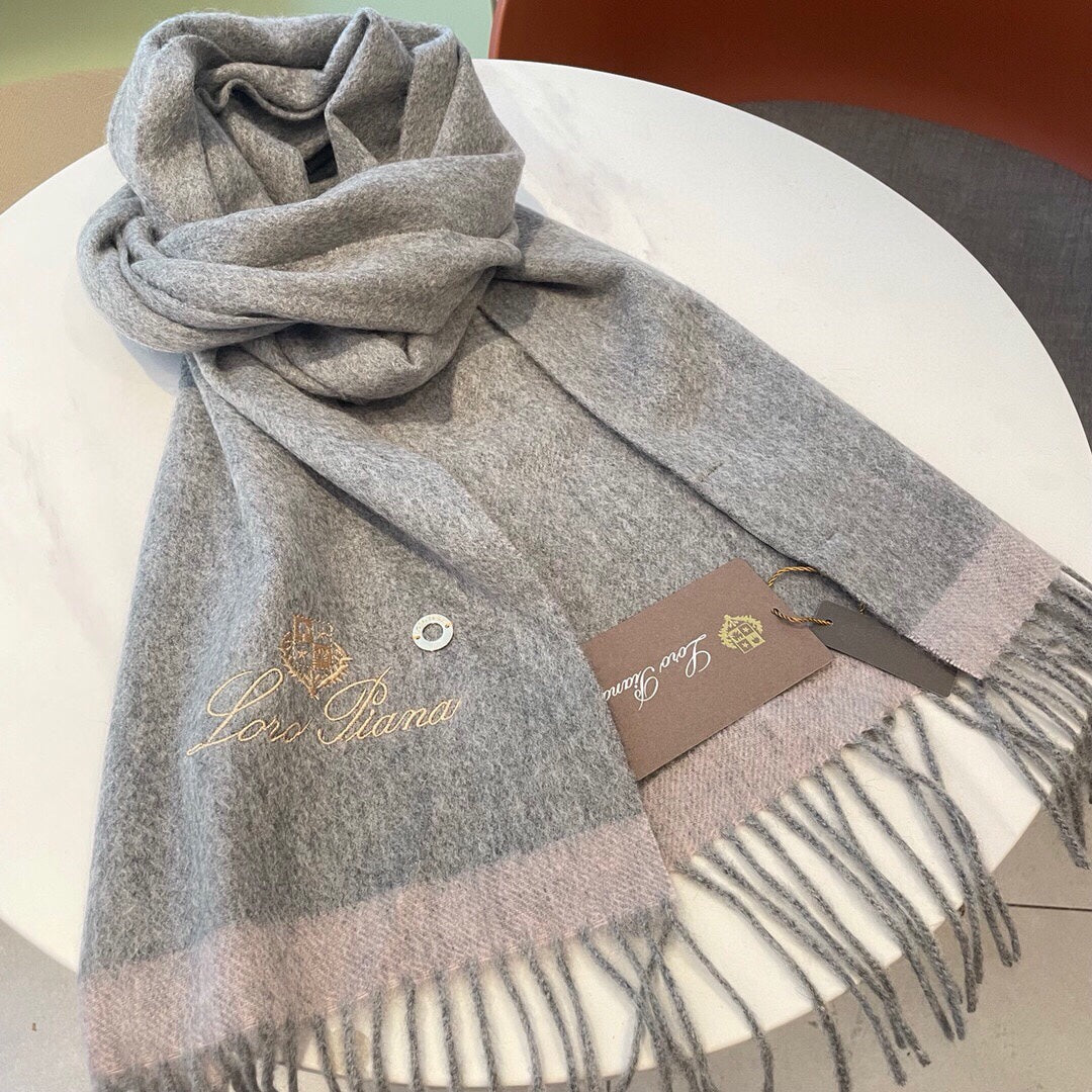 LP Grande Unita Scarf 180 CM In Light Grey With Light Brown Cashmere 175044