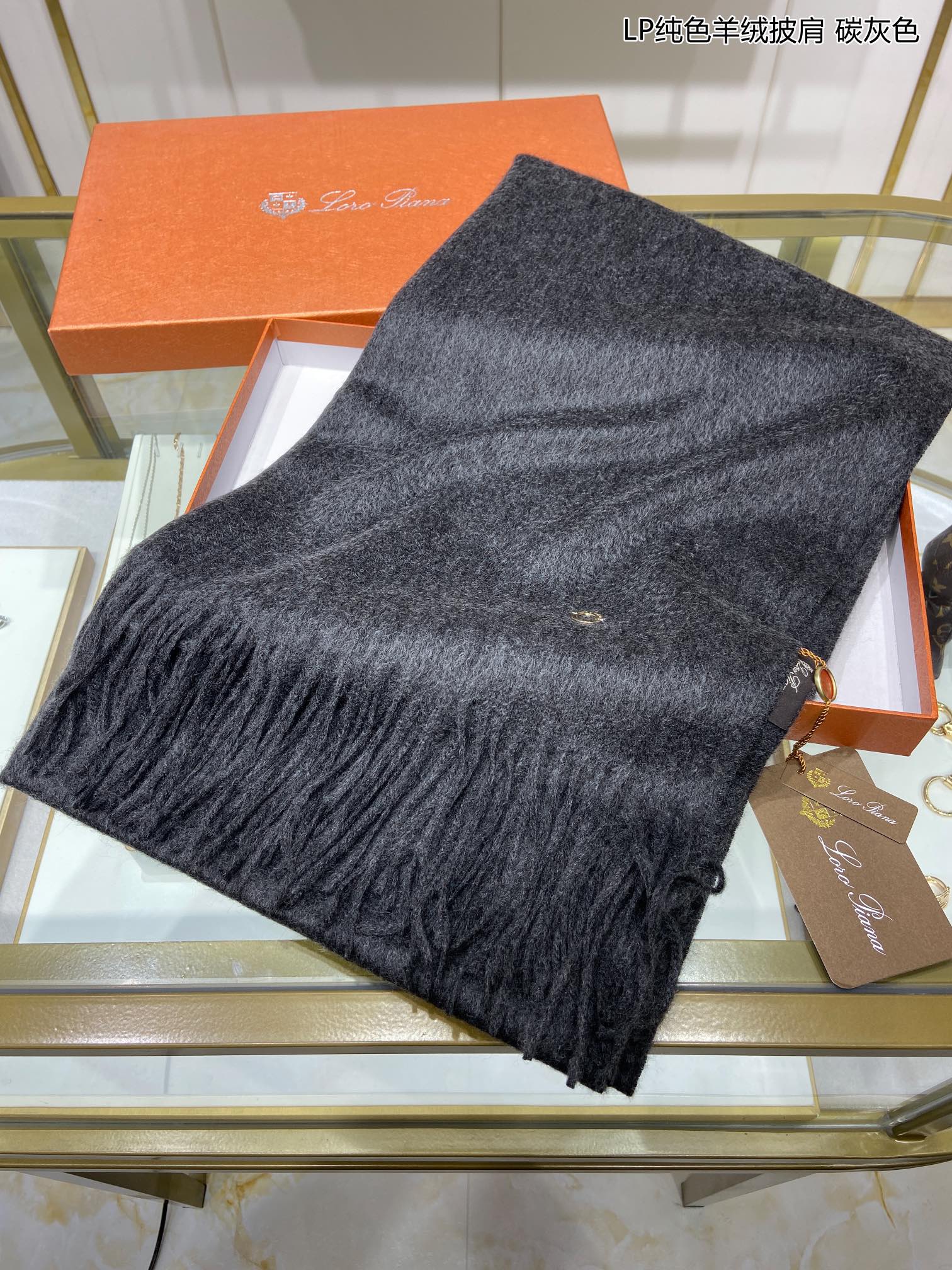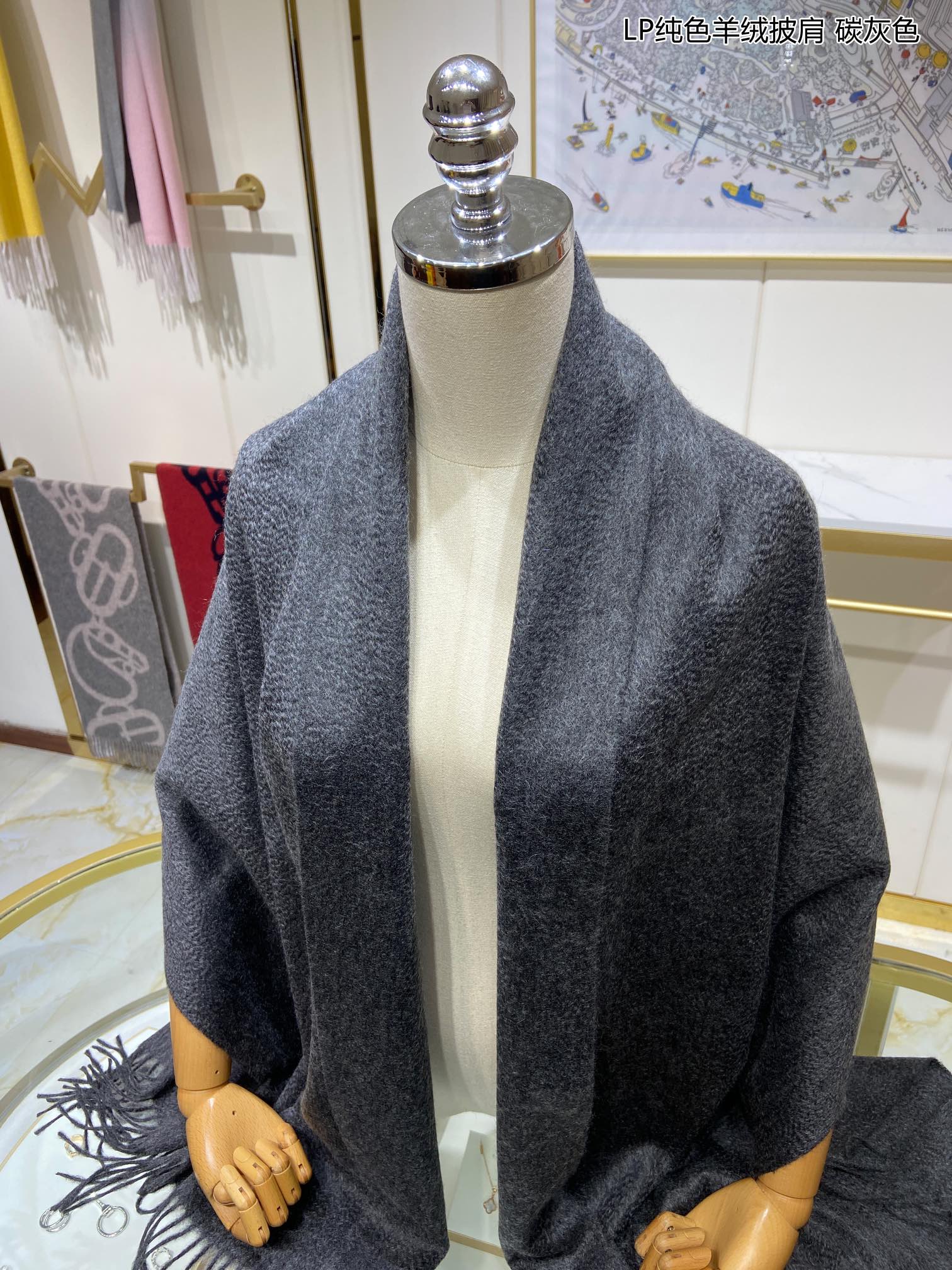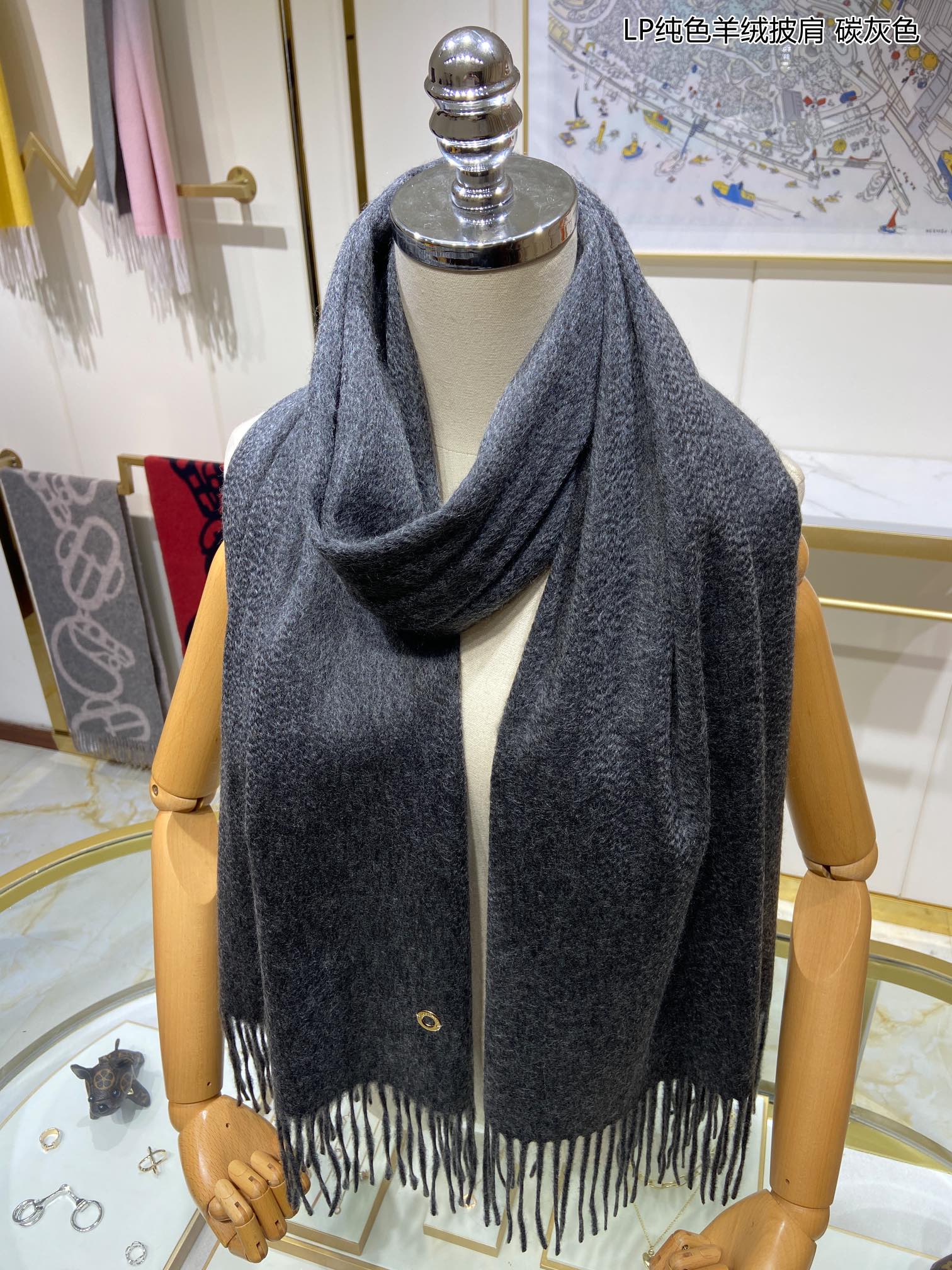 LP Grande Unita Scarf 200 CM In Black Grey Cashmere 645516