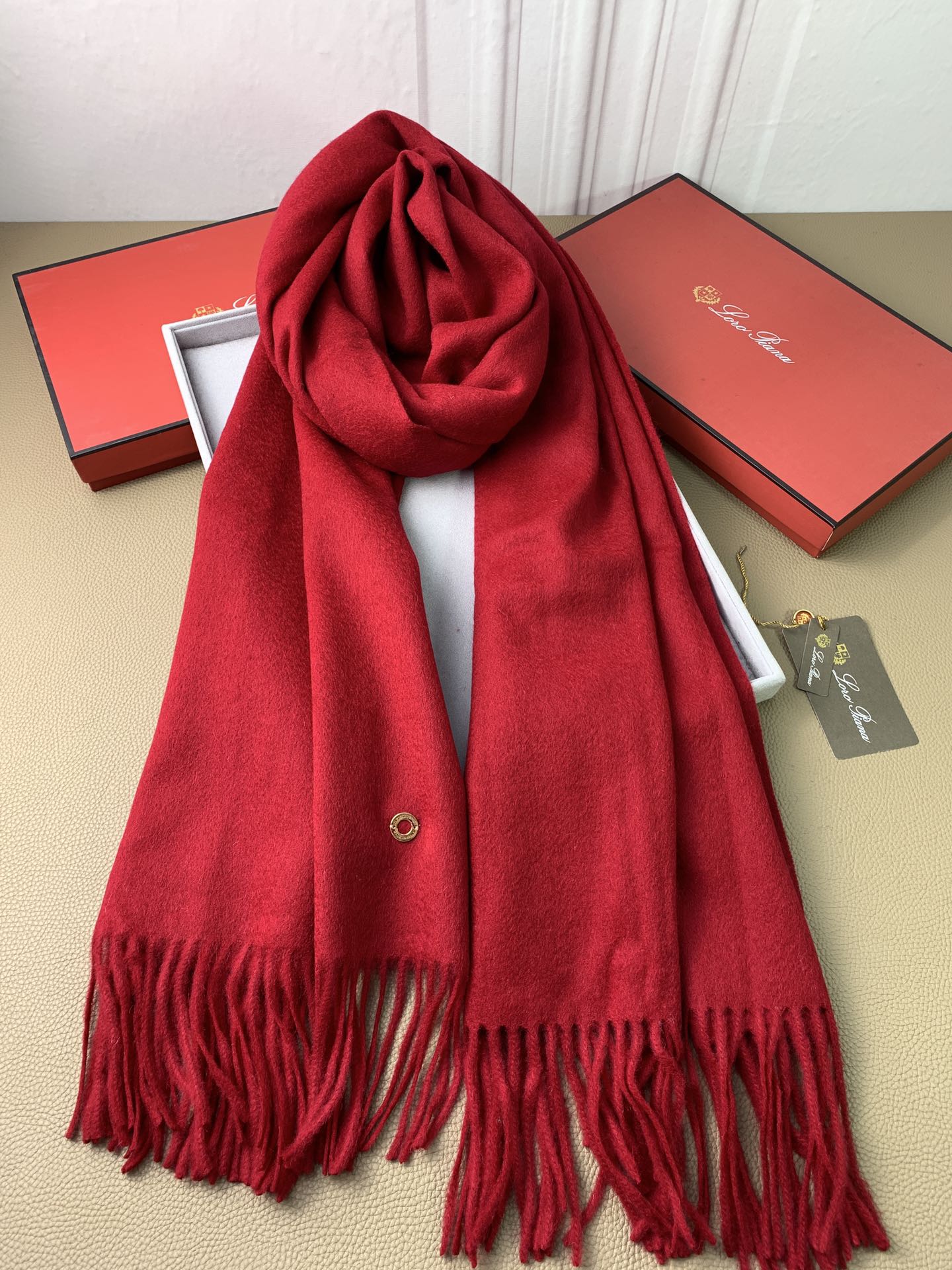 LP Grande Unita Scarf 200 CM In Dark Red Cashmere 378392