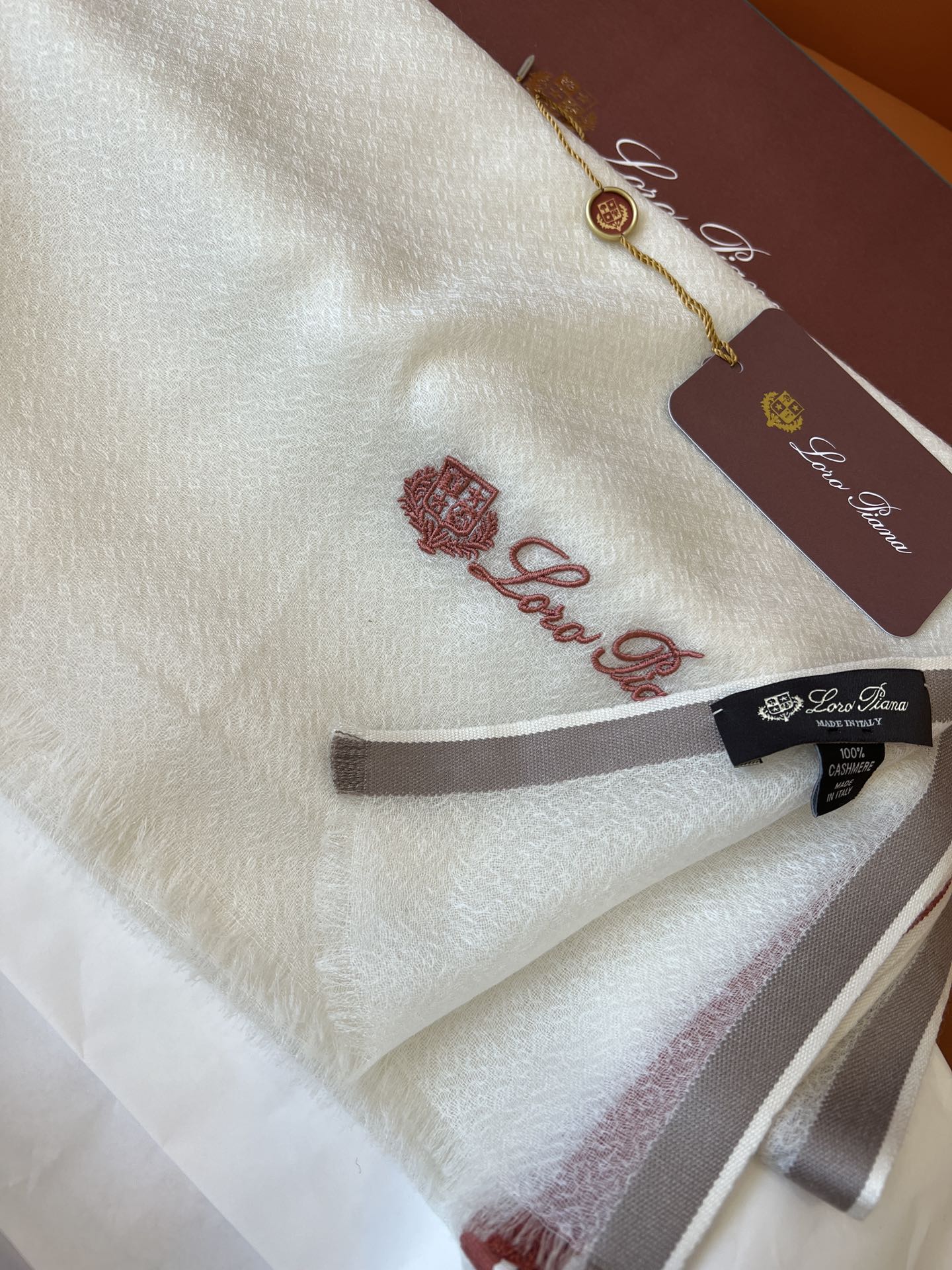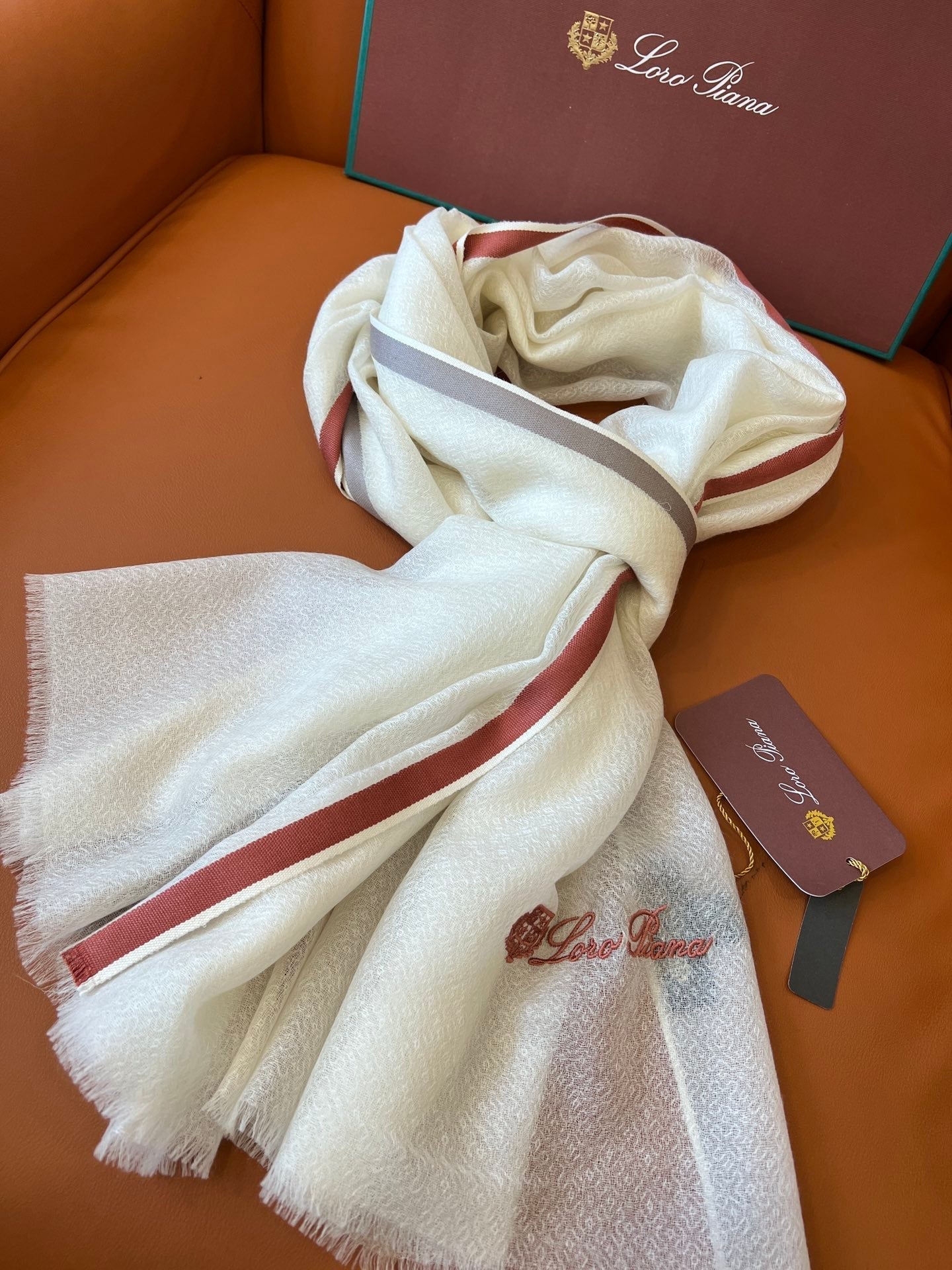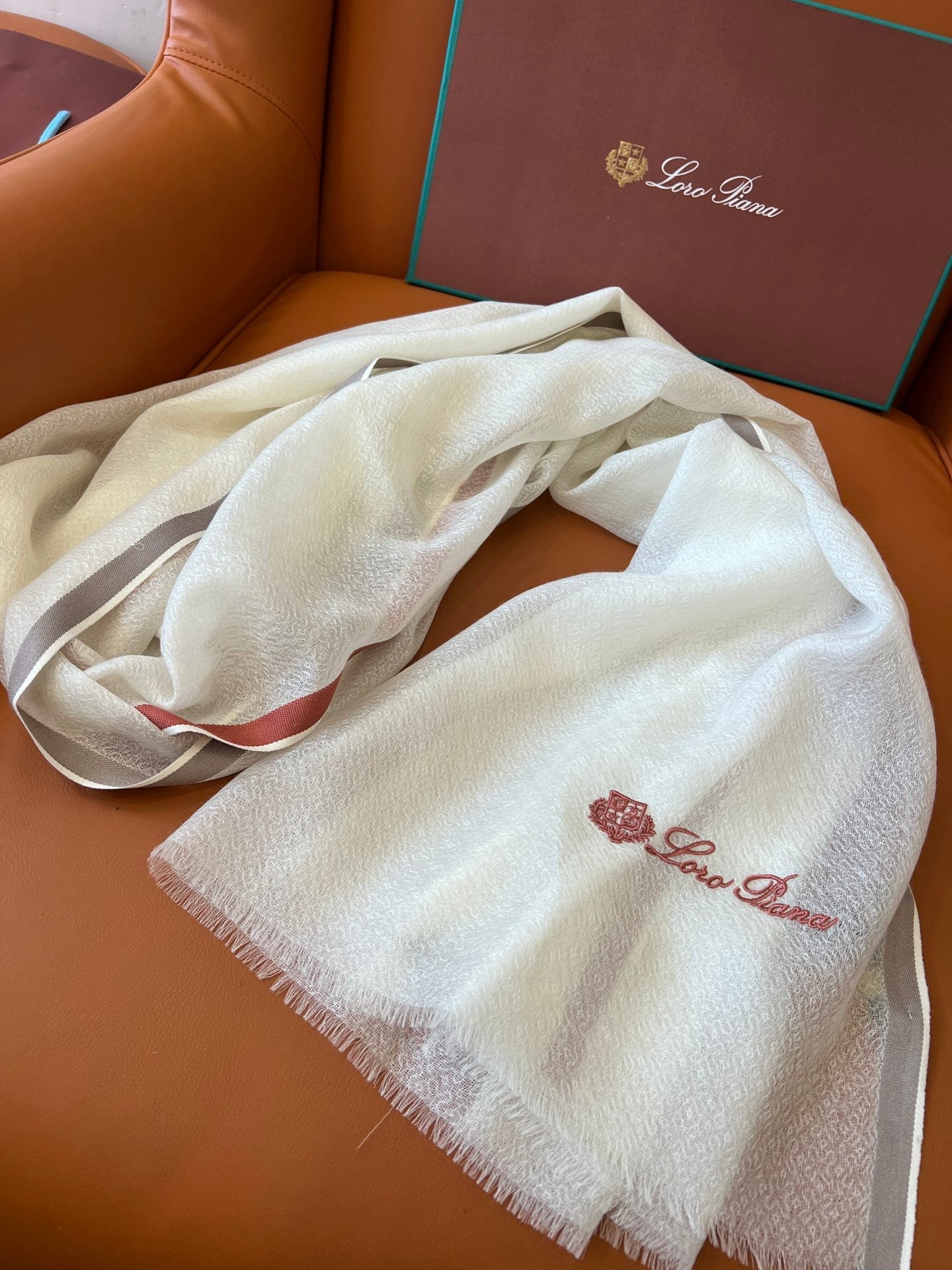 LP Quadrata Rainbow Scarf 210 CM In White Thin Silk Woven With Wool 428593