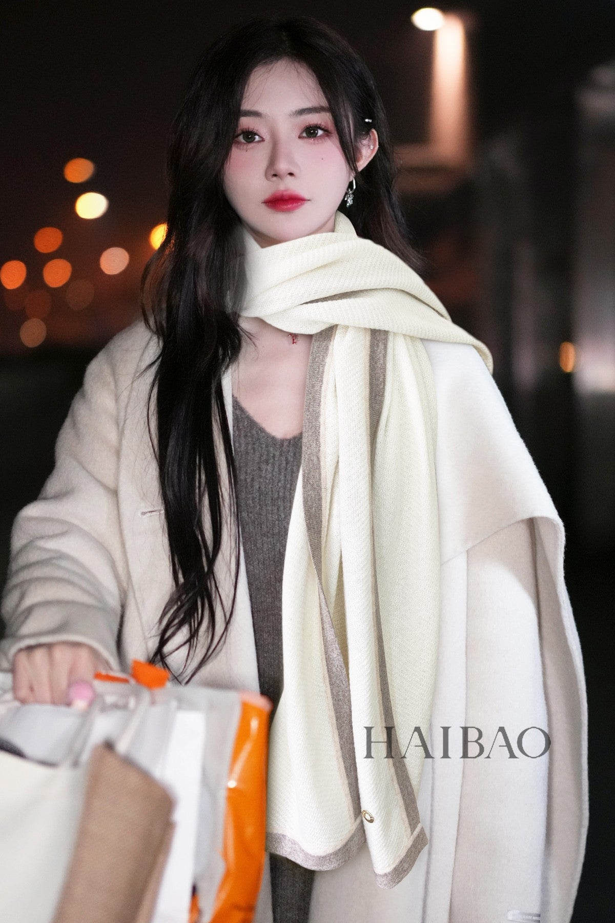 LP Scarf 170 CM In White Mix Grey Consinee Cashmere 205599