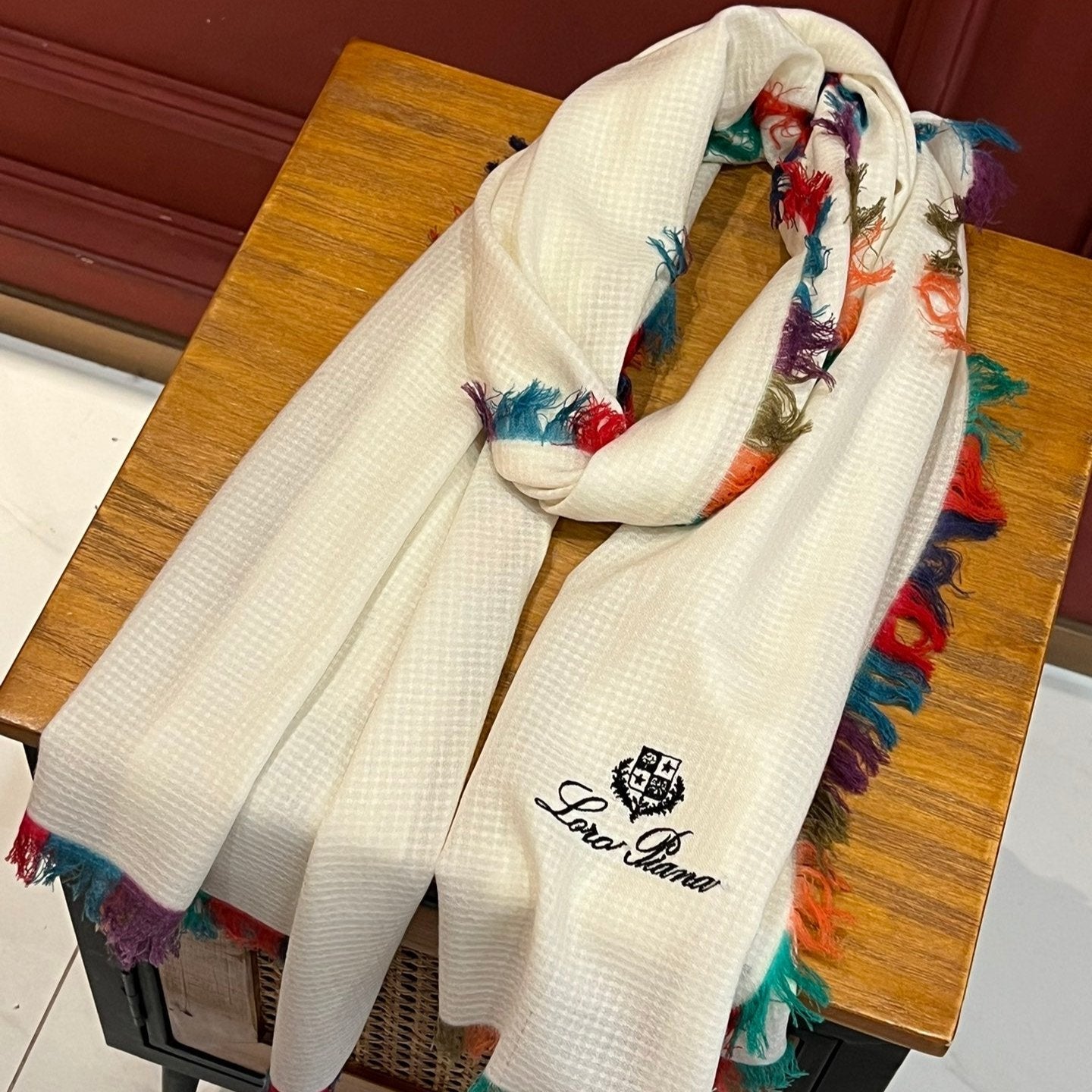 LP Scarf 190 CM In White Colorful Waffle Fabric Woven 975484