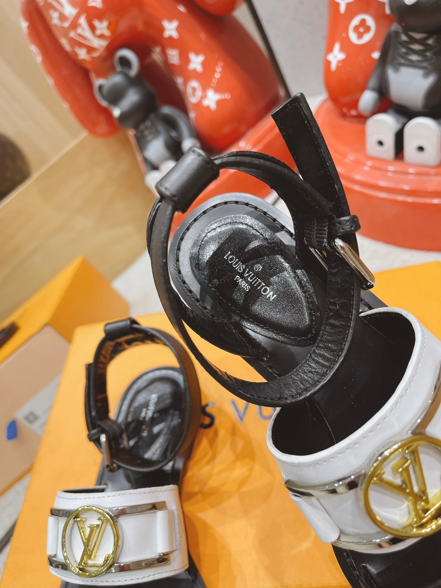 LV Academy Flat Sandal Black White Cowhide