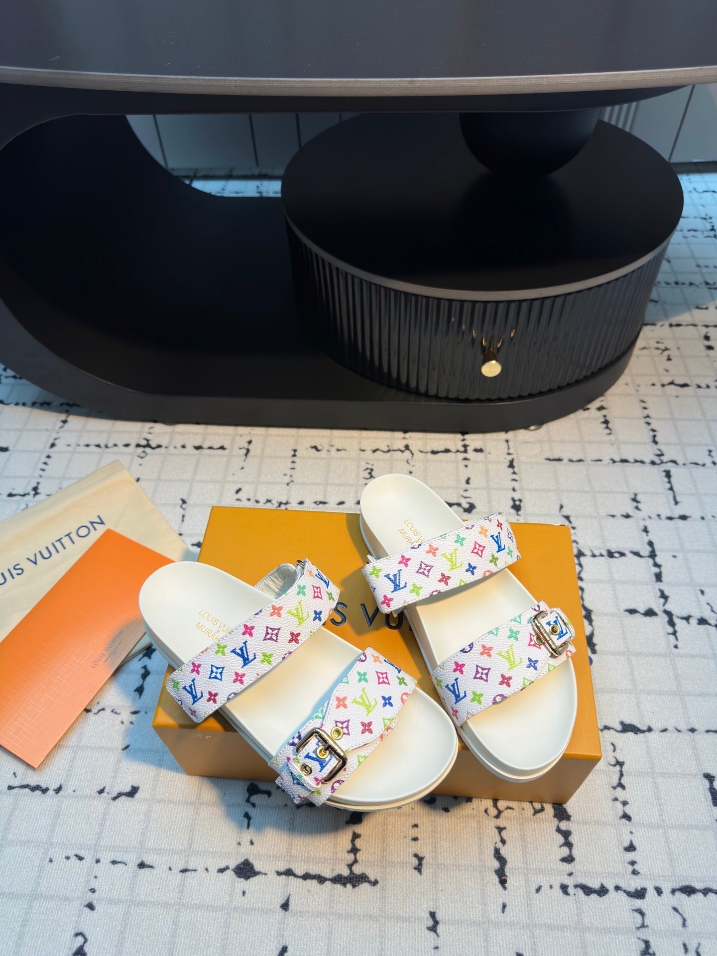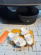 LV LV x TM Bom Dia Flat Comfort Mule White with Monogram Multicolore Leather 218912