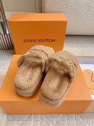 LV Sunset Platform Comfort Mule Light Brown Wool