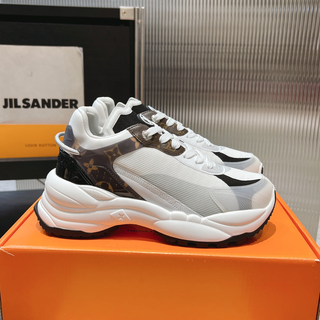 LV Run 55 Sneaker 55mm White Mix Brown Black Monogram Polyester Mesh Fabric