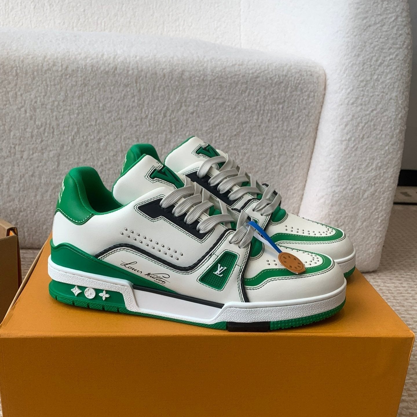 LV Trainer Sneaker White Mix Green Cowhide