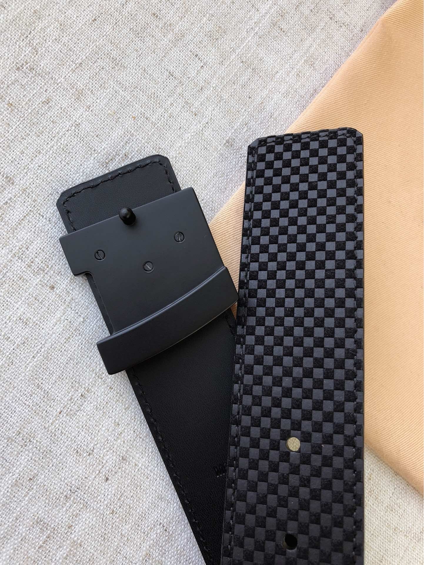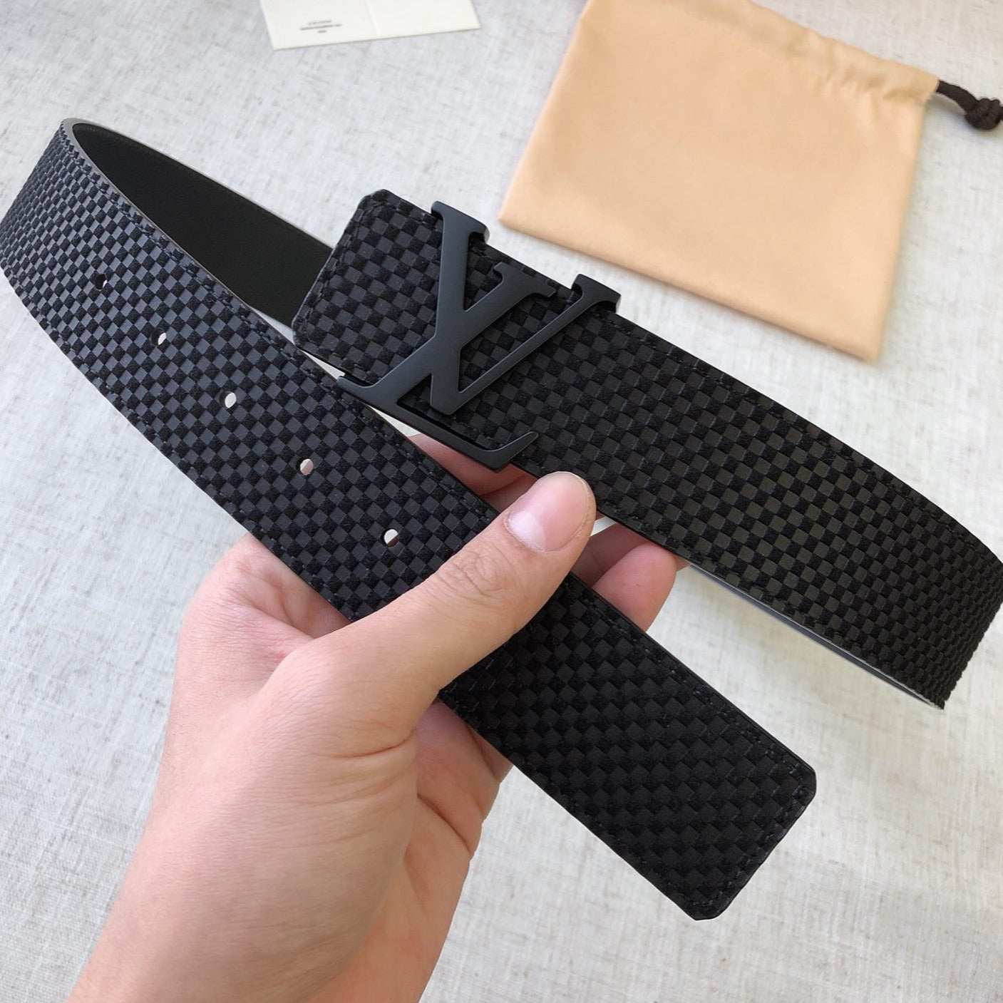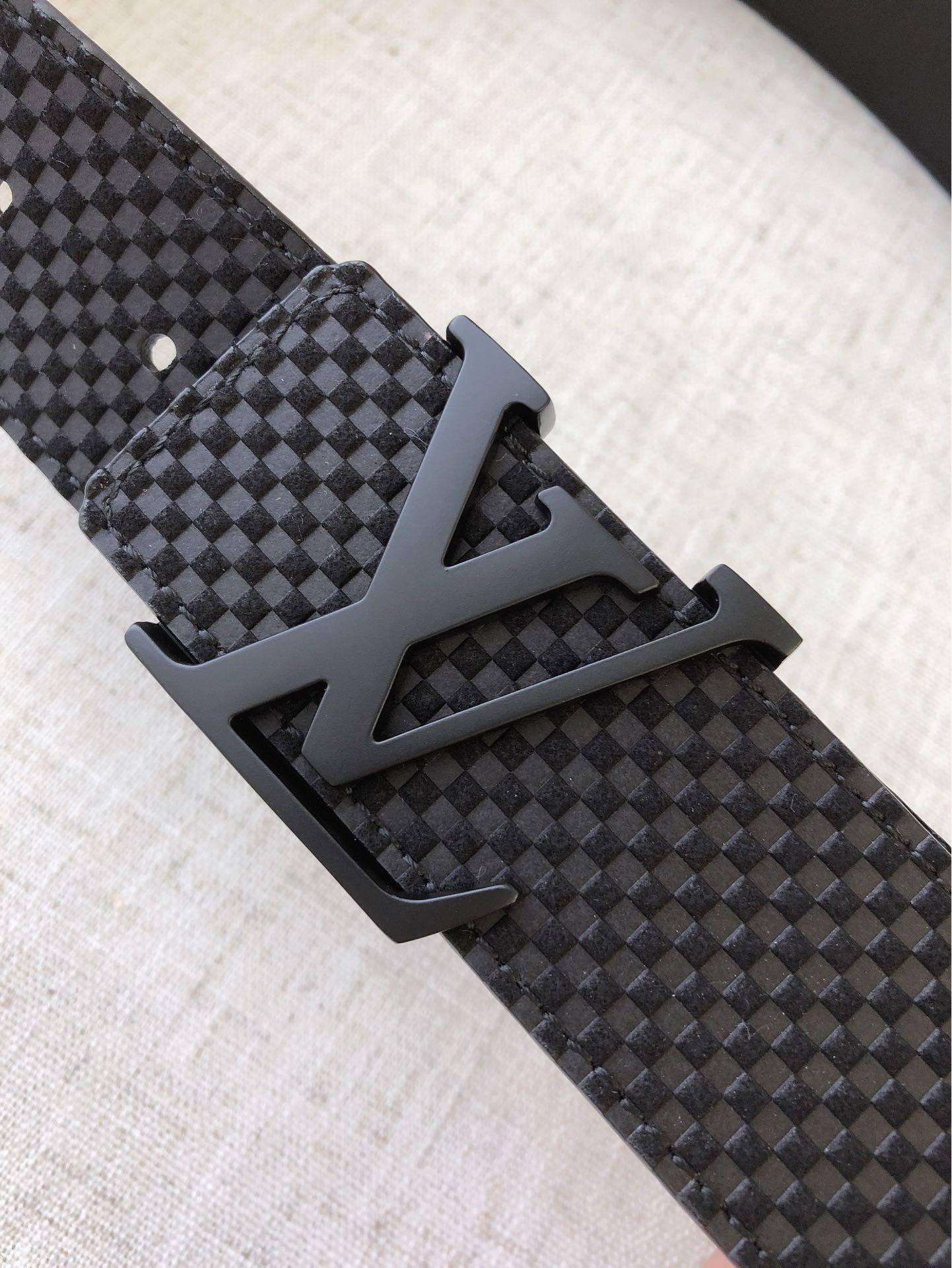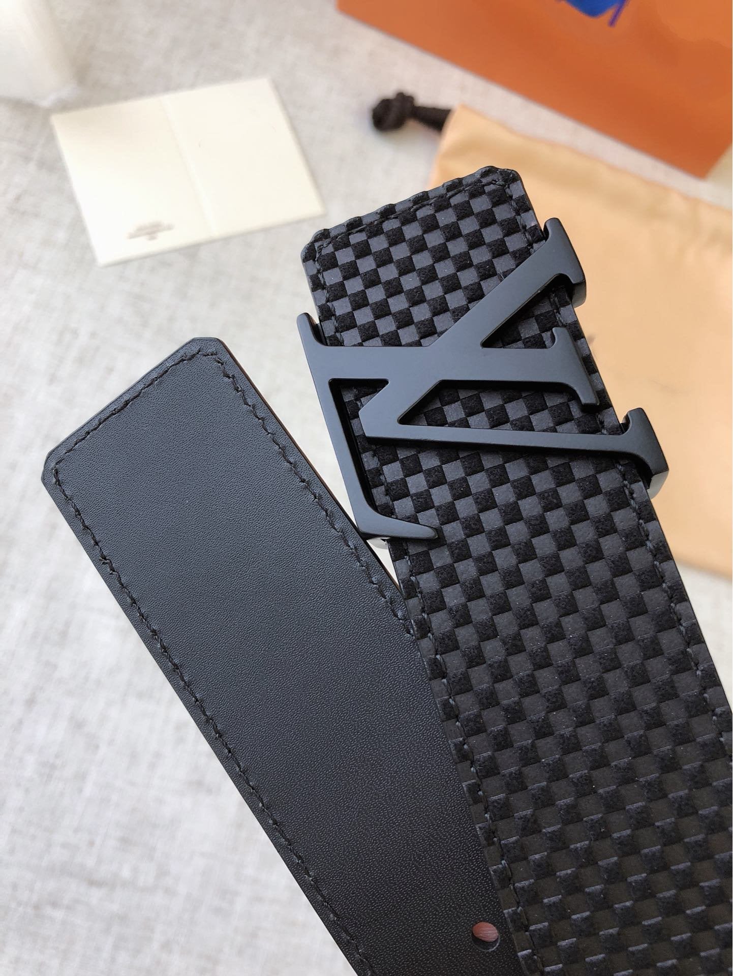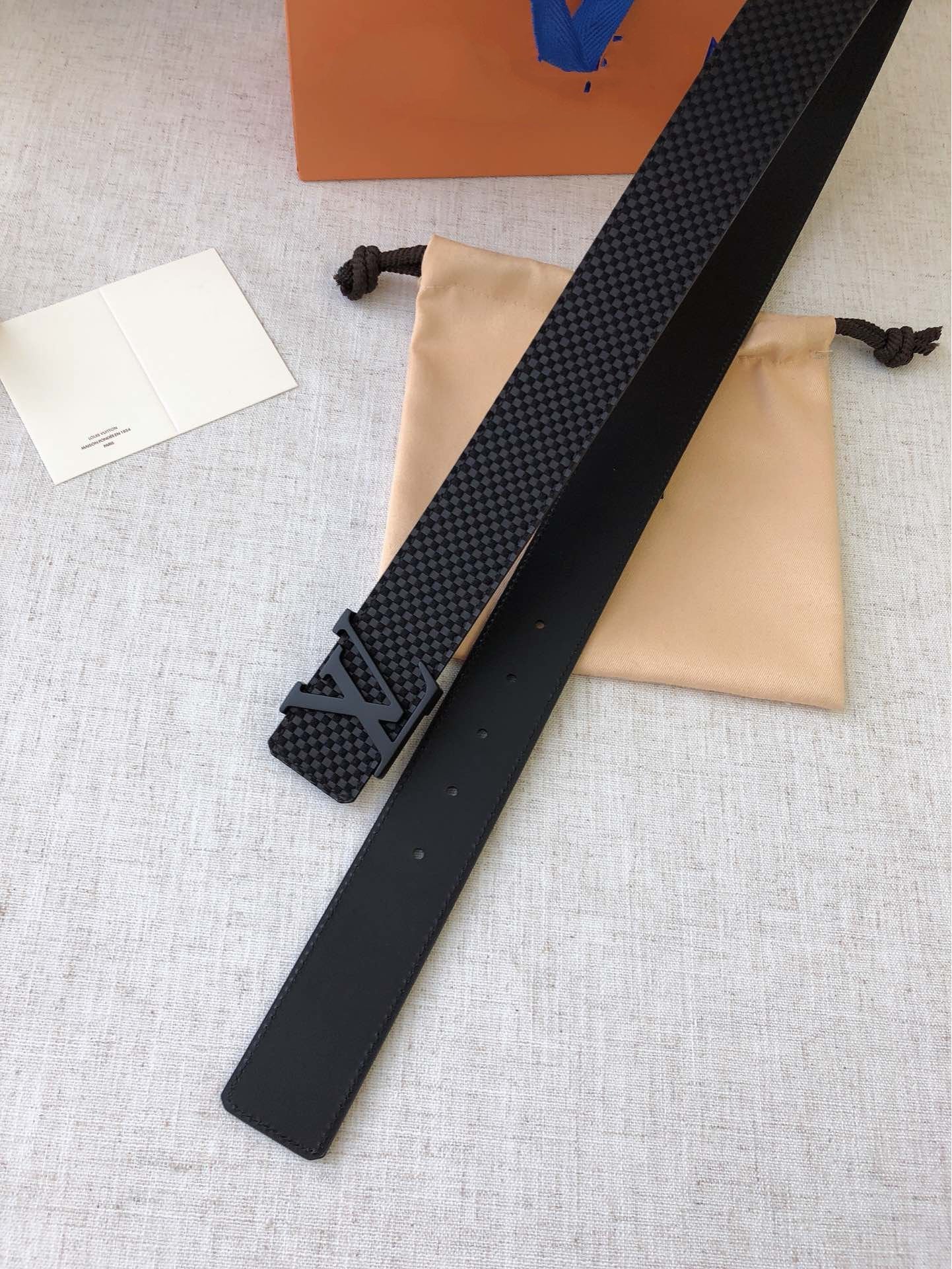 LV 40MM BELT BLACK BUCKLE EMBOSSED BLACK LEATHER