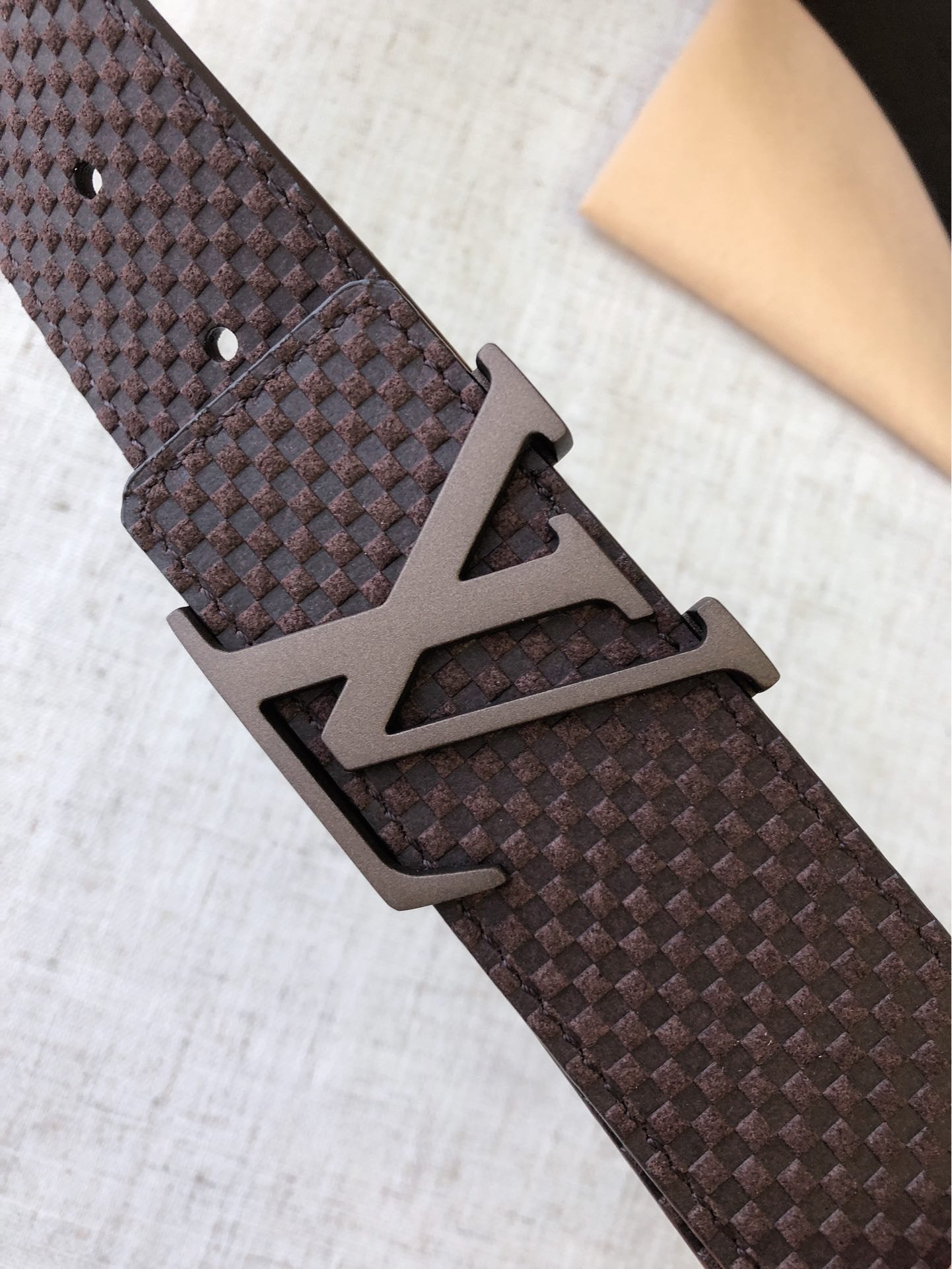 LV 40MM BELT BROWN BUCKLE EMBOSSED BROWN BLACK LEATHER
