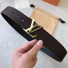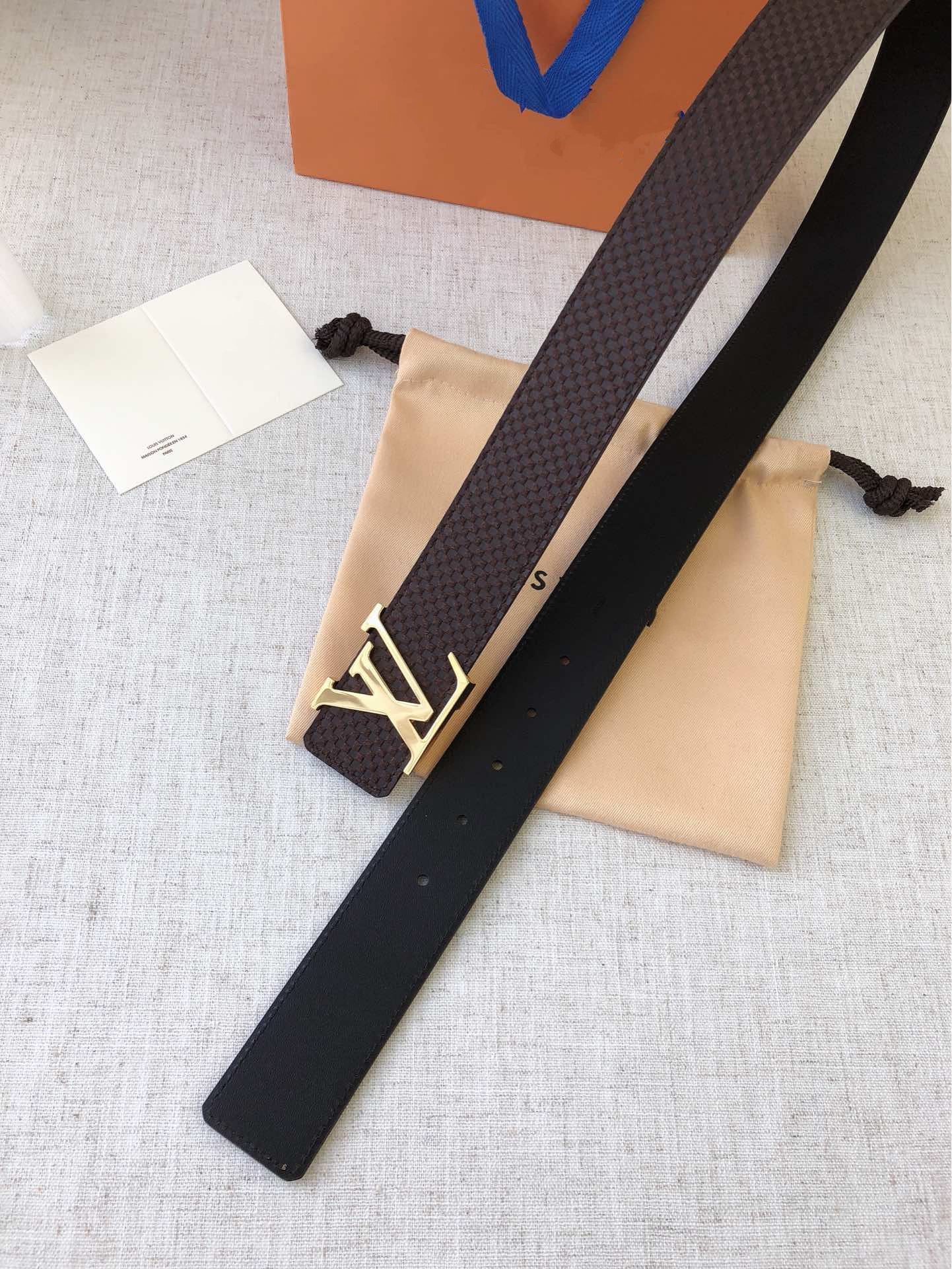 LV 40MM BELT GOLD BUCKLE EMBOSSED BROWN BLACK LEATHER