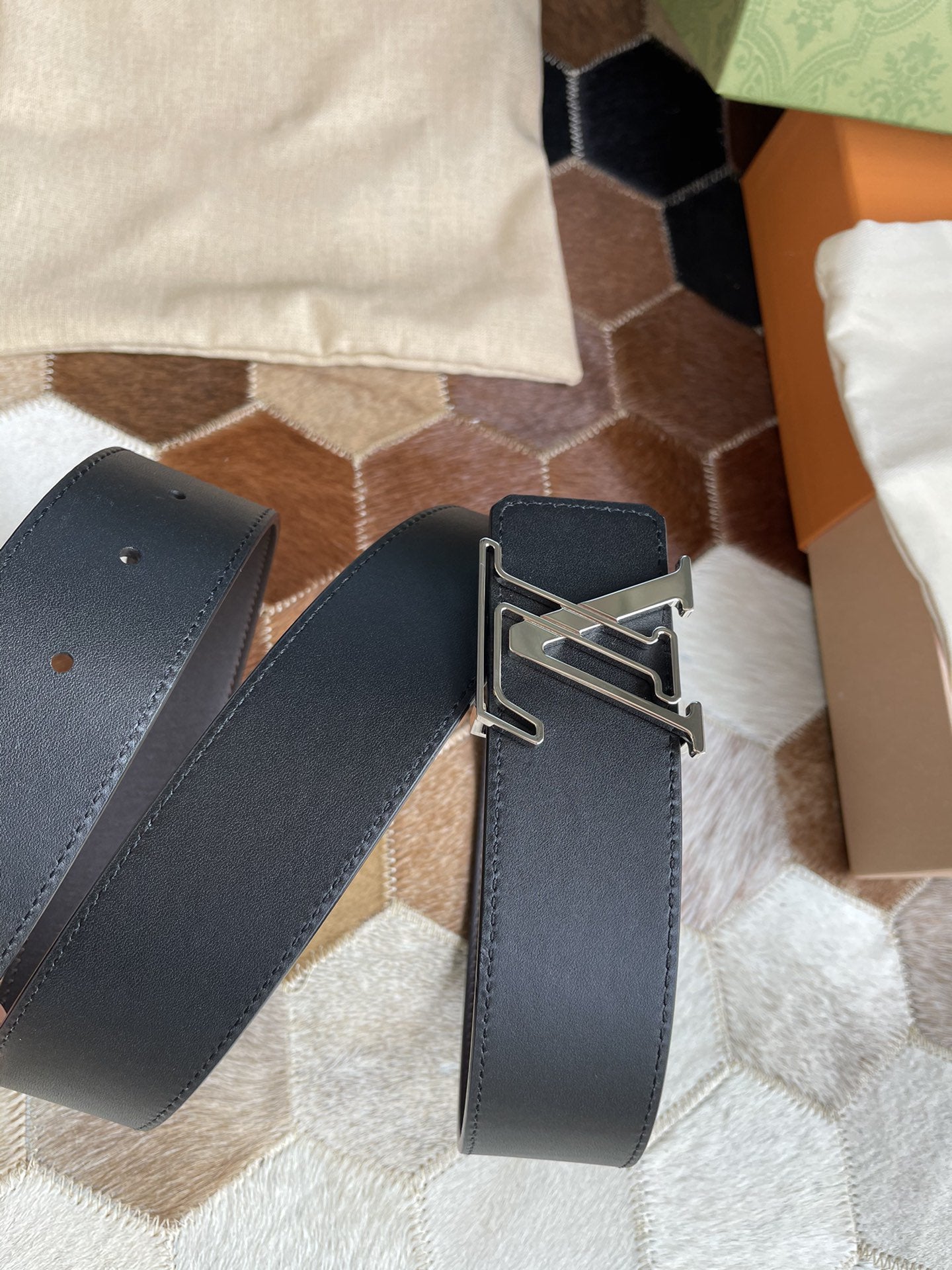 LV 40MM REVERSIBLE BELT SILVER BUCKLE BLACK CHOCOLATE LEATHER
