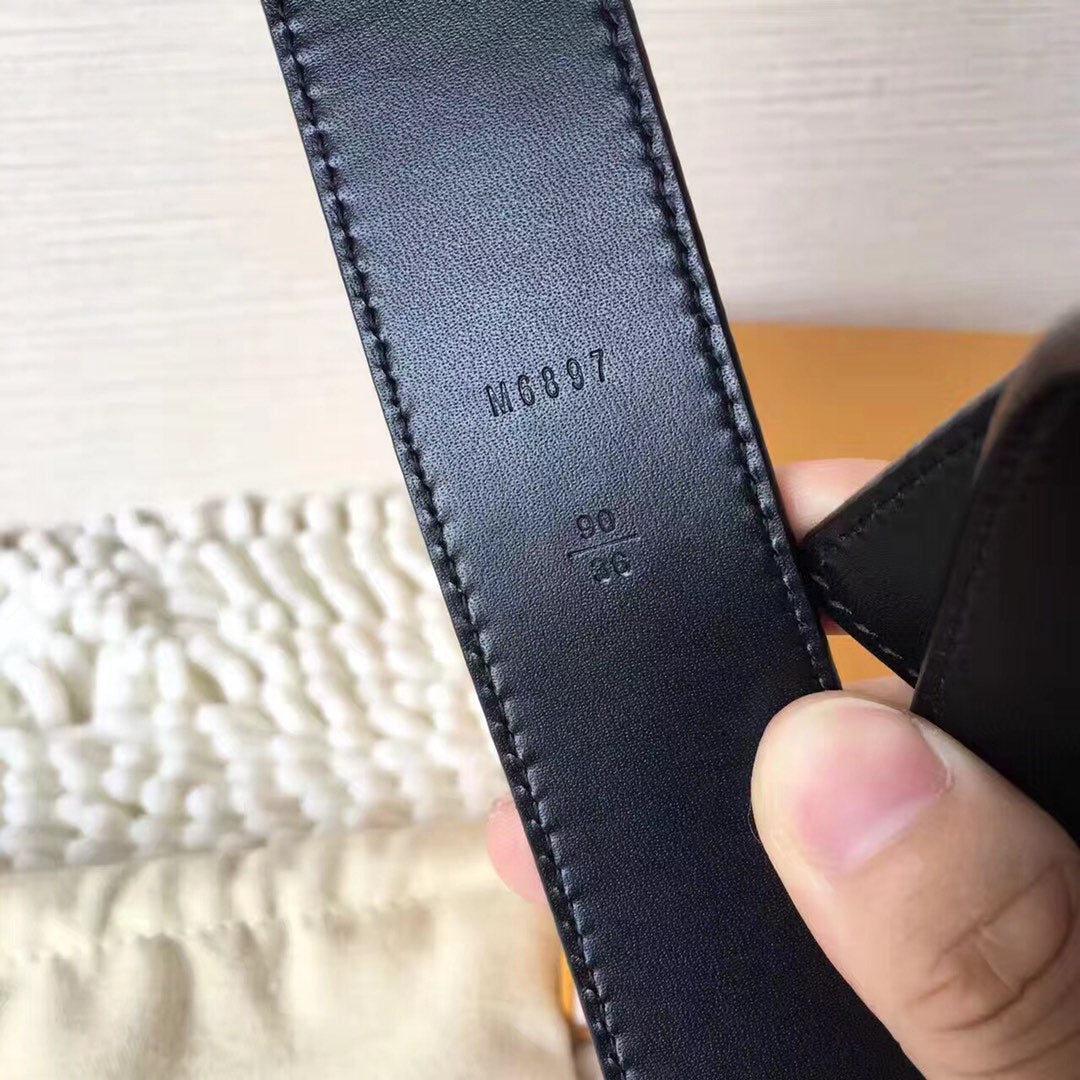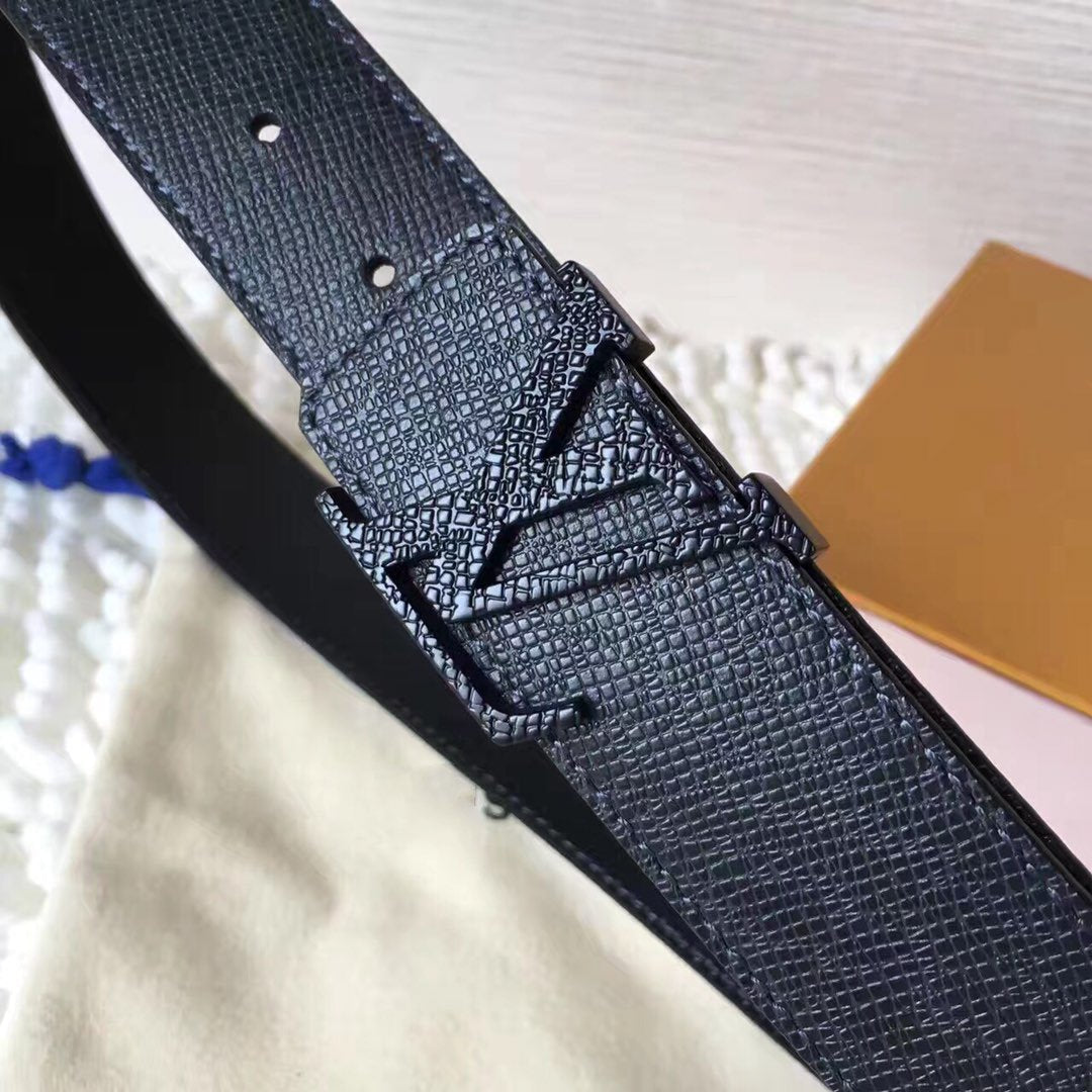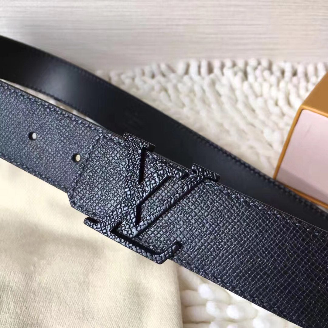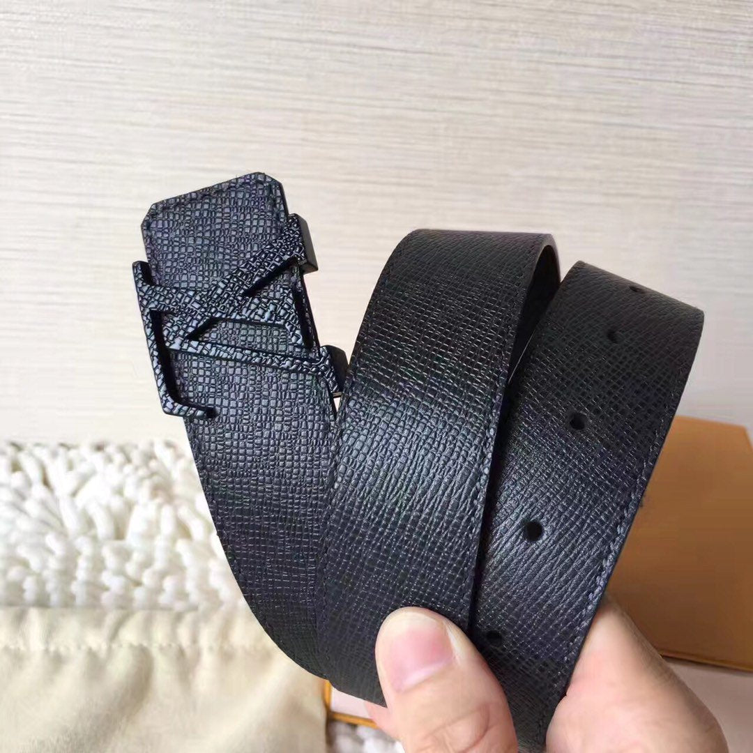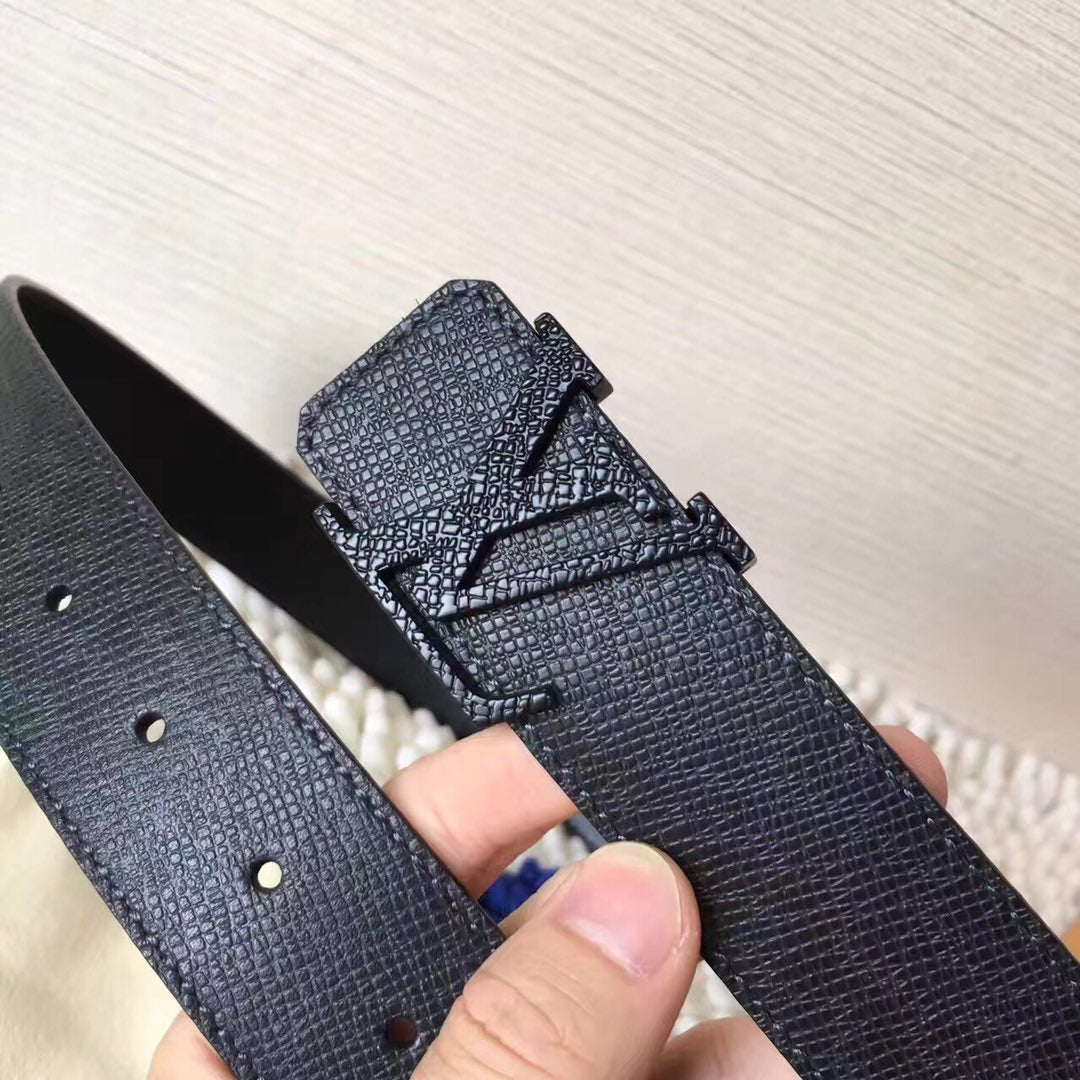 LV BELT BLACK BUCKLE BLACK WRINKLED LEATHER 40MM