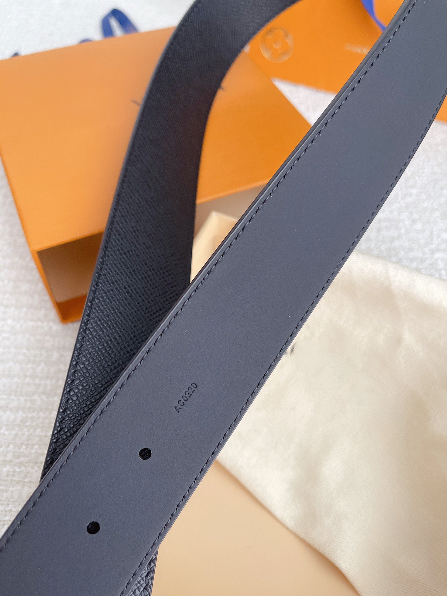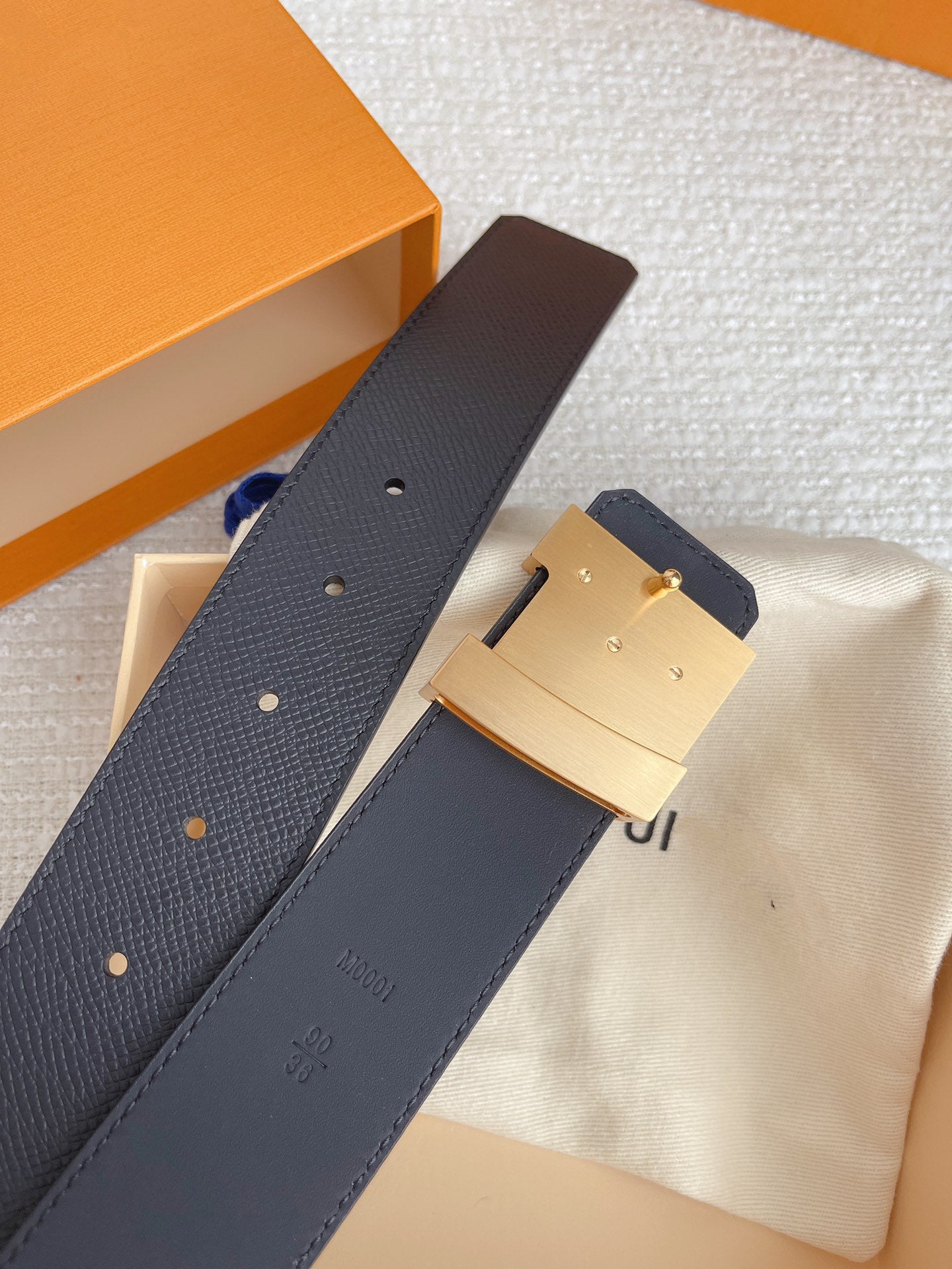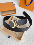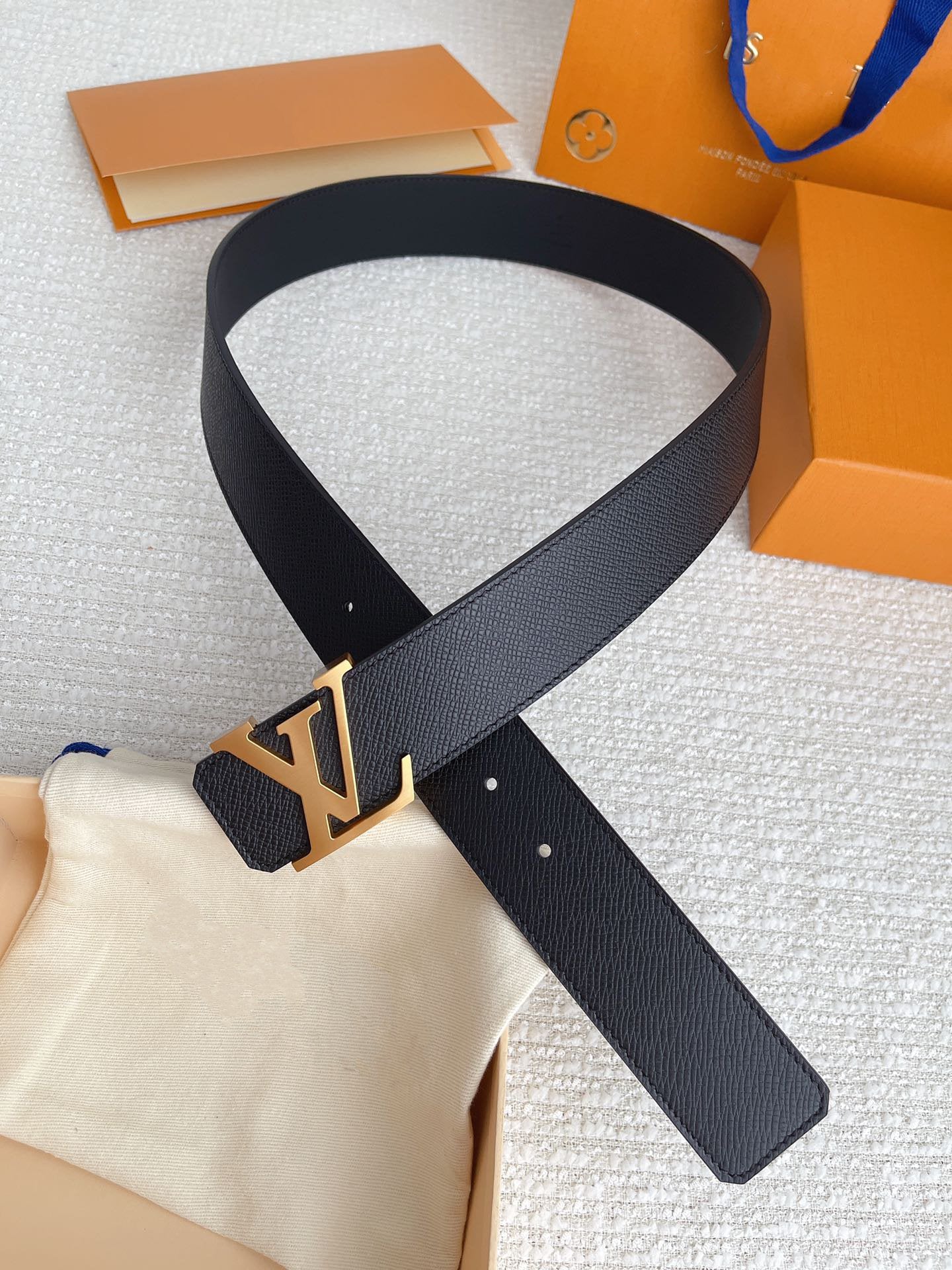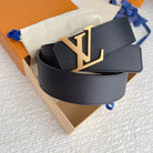 LV BELT GOLD BUCKLE BLACK WRINKLED LEATHER 40MM