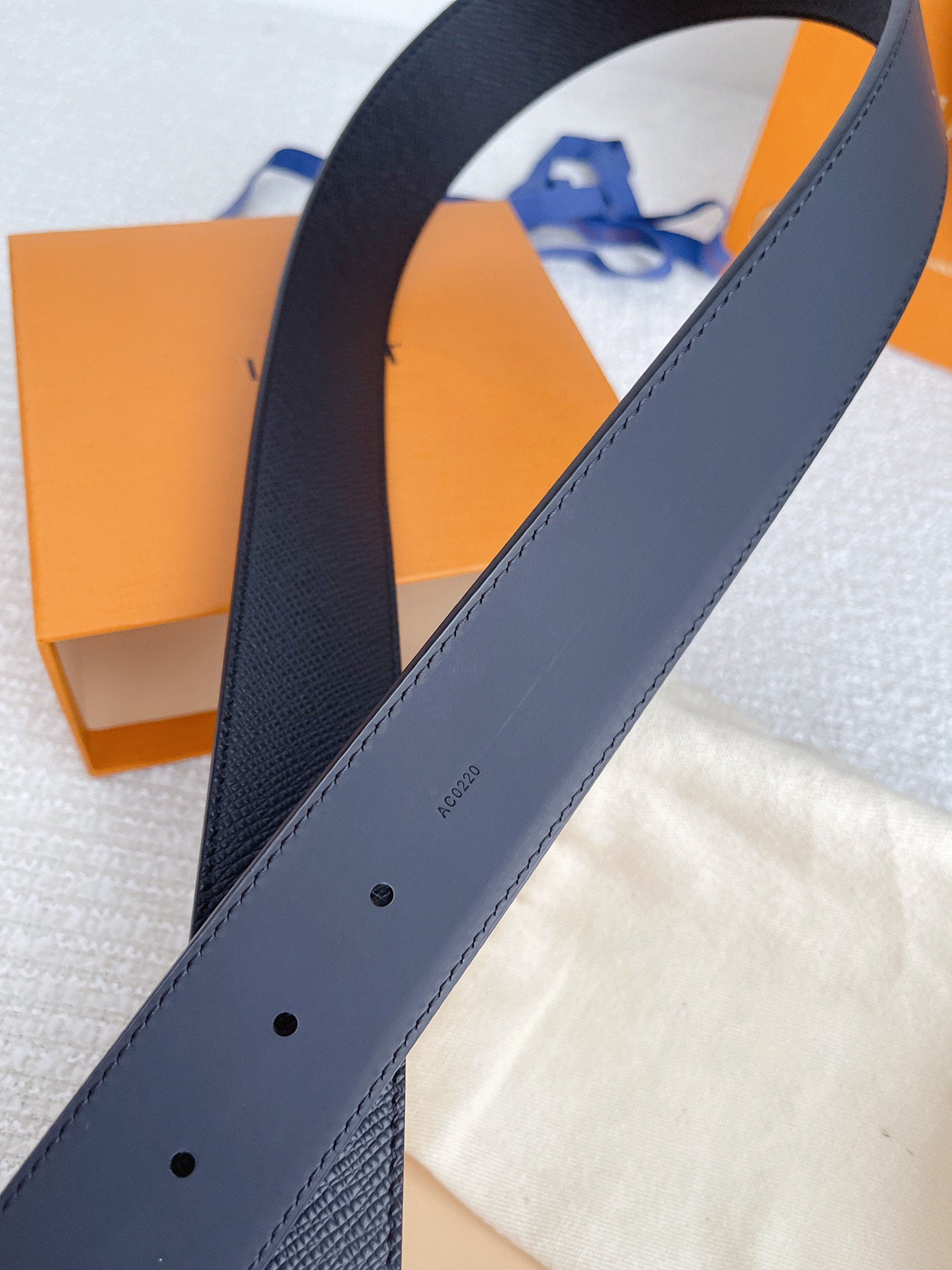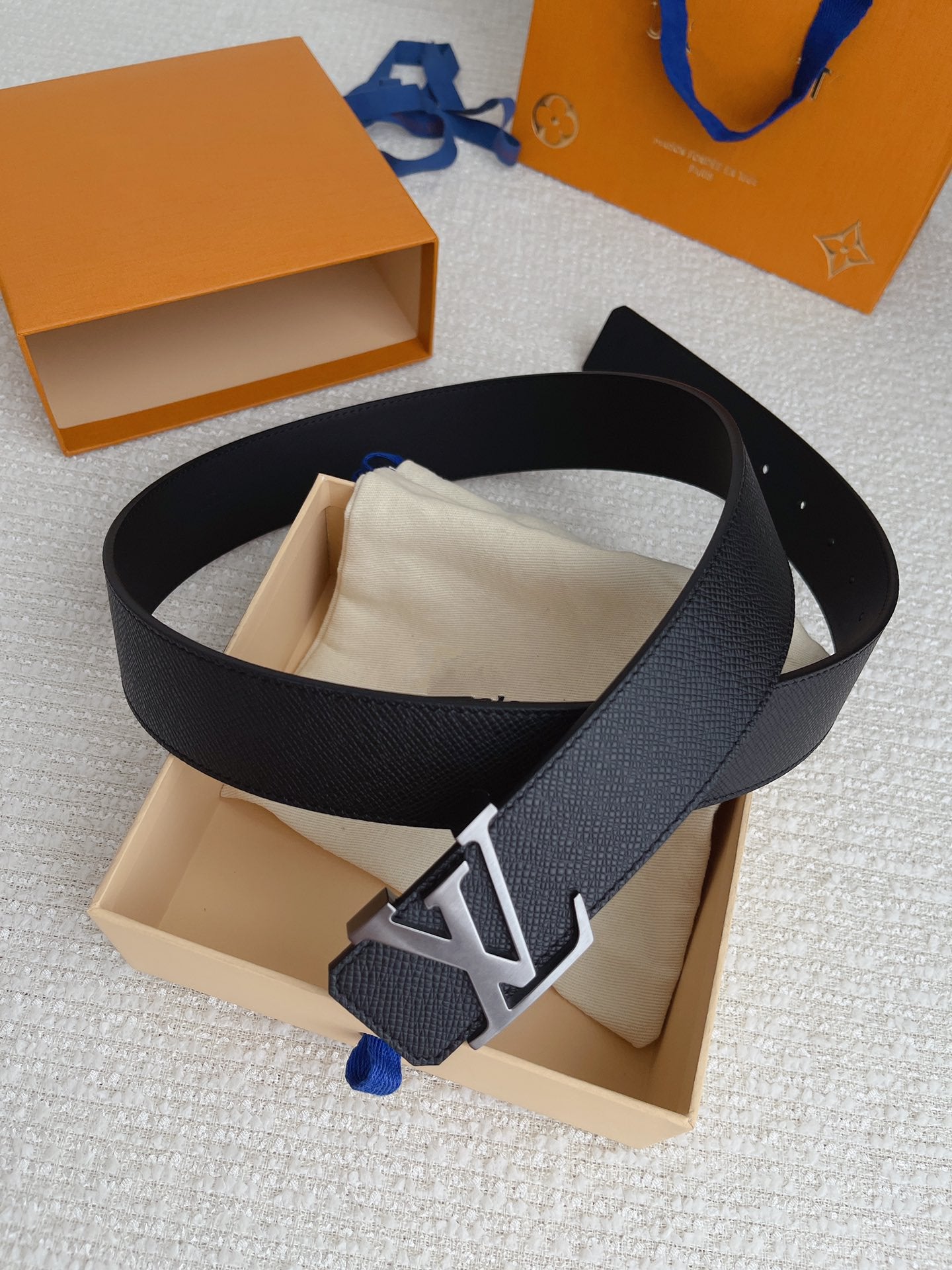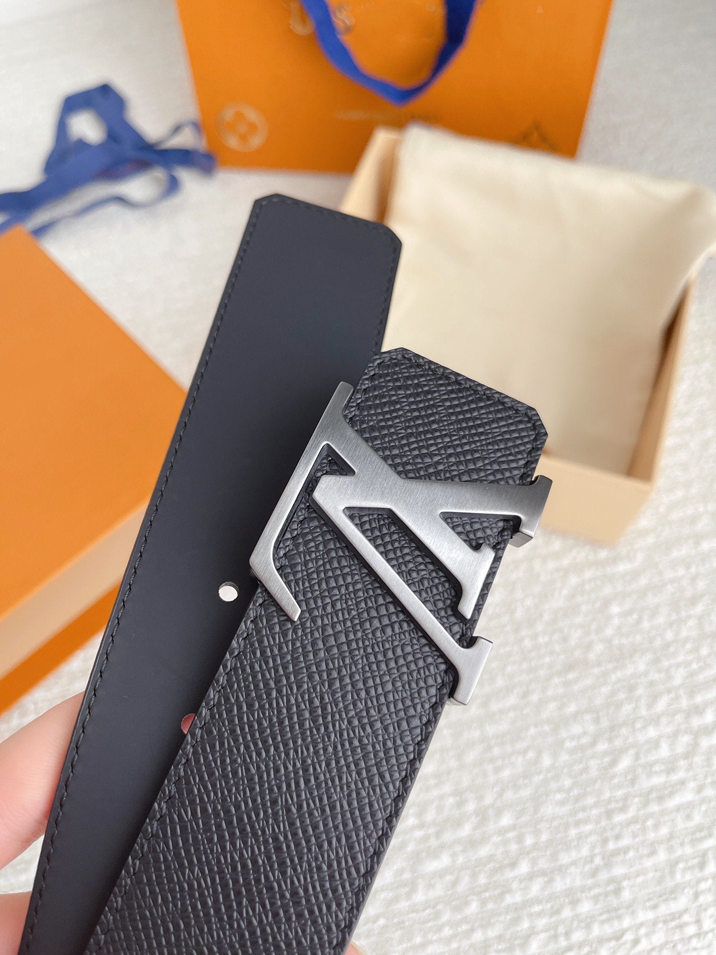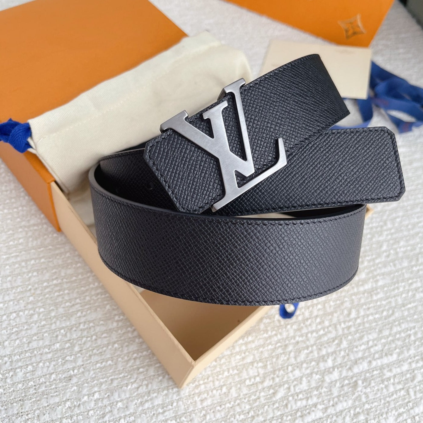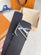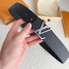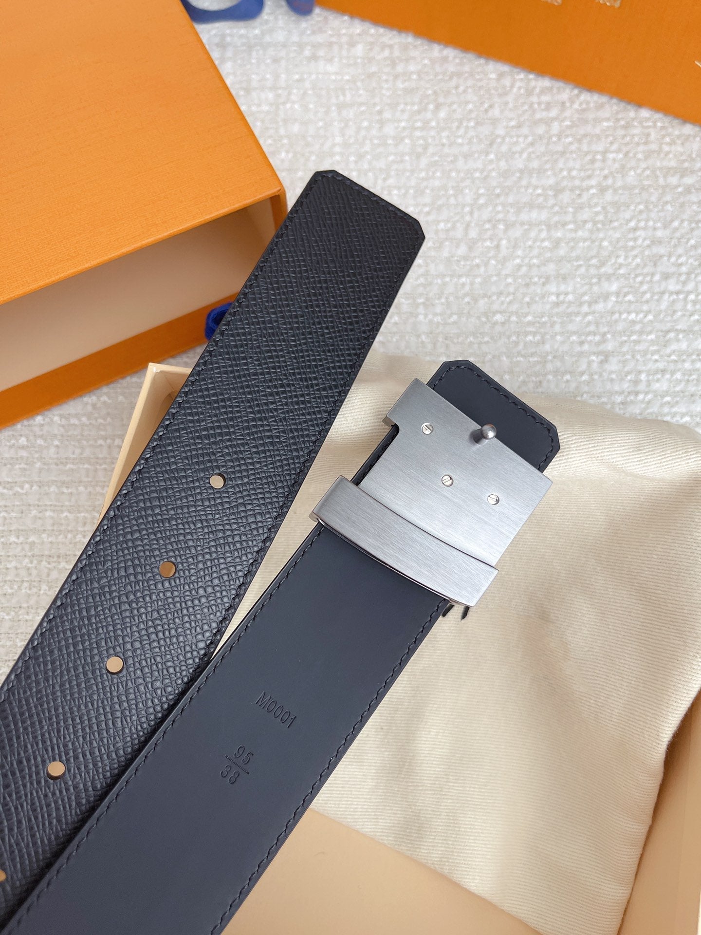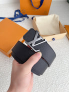 LV BELT SILVER BUCKLE BLACK WRINKLED LEATHER 40MM