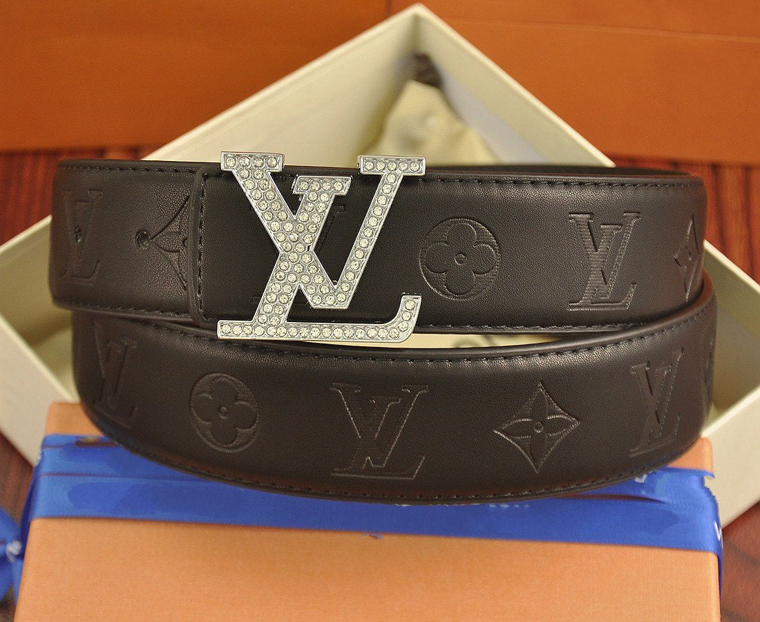 LV BELT SIMPLE DIAMOND BUCKLE BLACK LEATHER 38MM