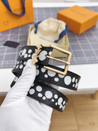 LV Bloom 30mm Belt Gold Buckle Black White Leather