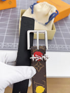 LV Bloom 30mm Mutilcolor Belt Silver Buckle Black Brown Leather