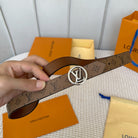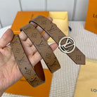 LV CIRCLE 25MM REVERSIBLE BELT MEDIUM BROWN MONOGRAM CALFSKIN SILVER HARDWARE