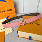 LV Flowergram 30mm Reversible Belt Gold Buckle Pink Brown Leather