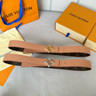 LV Flowergram 30mm Reversible Belt Silver Buckle Beige Brown Leather